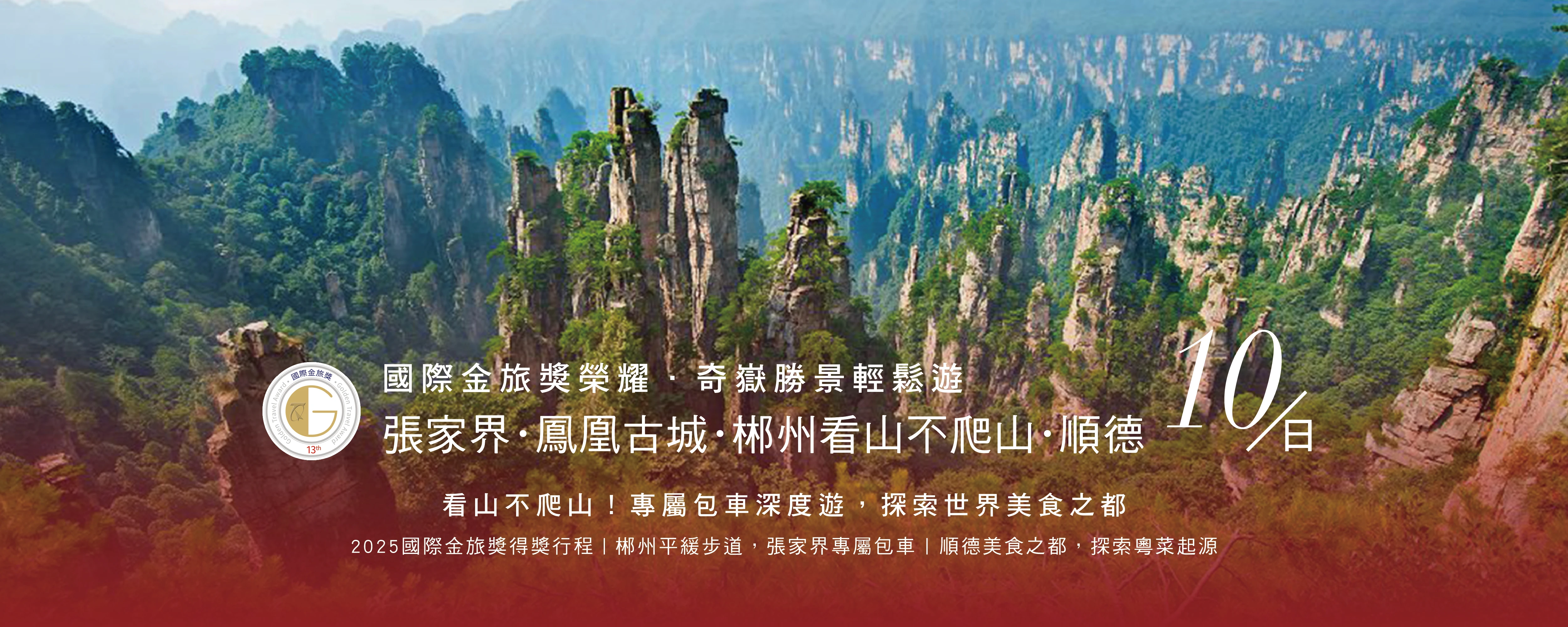 張家界.鳳凰古城.郴州看山不爬山.世界美食之都-順德10日