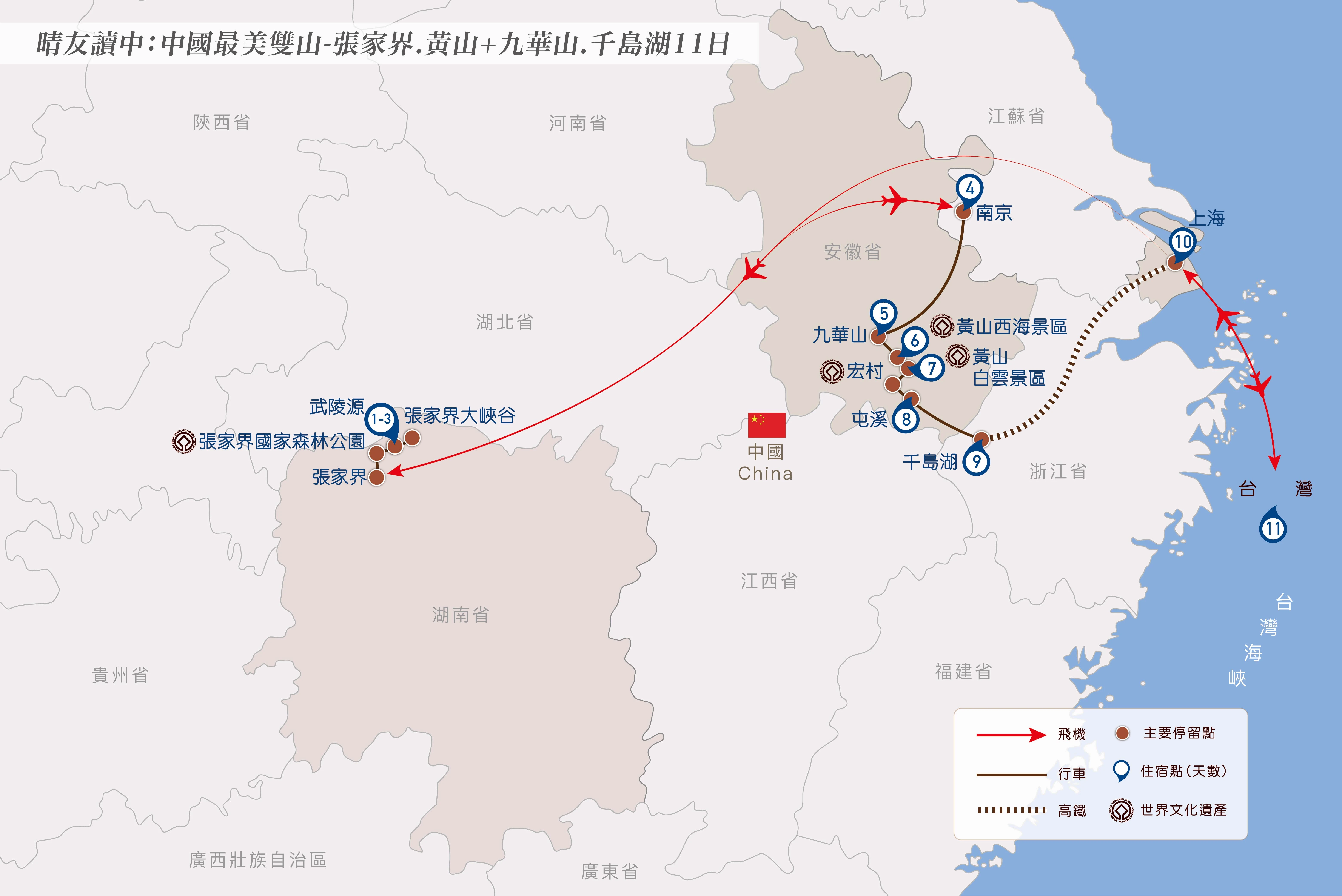 晴友讀中:中國最美雙山-張家界.黃山+九華山.千島湖11日