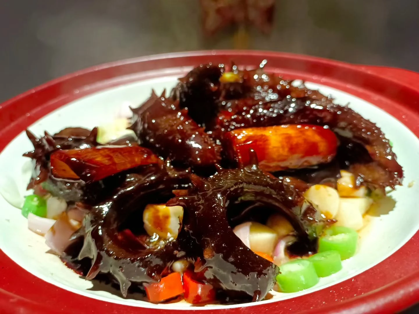 大連欣楊記飯店的蔥燒遼參是一道經典遼菜,以大連本地遼刺參為主料,搭配章丘大蔥和傳統魯菜技法烹製,口感軟糯彈牙,醬汁濃郁醇厚。其特色在於選用三年自然生長的遼刺參,肉質厚實且營養豐富,通過蔥油煨燒充分激發海參的鮮味。