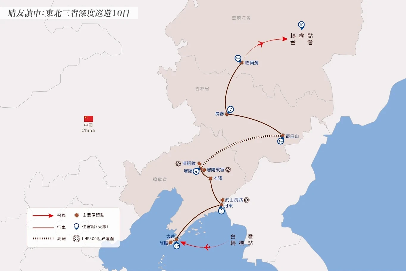 【瀋陽故宮清昭陵.丹東長城鴨綠江.長白山北觀天池.哈爾濱異國風情】