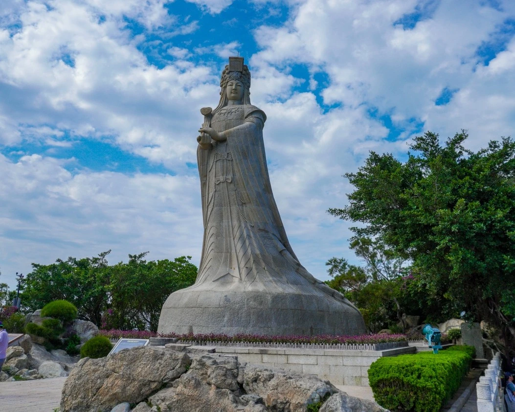 湄洲媽祖文化園位於祖廟建築群南軸線,是深入體驗媽祖信仰的核心場所。園內矗立著高聳入雲的媽祖石雕像,俯瞰臺灣海峽,莊嚴肅穆。園區通過系列雕塑、碑林及文化展覽,生動演繹媽祖故事與立德、行善、大愛的精神,已成為融合朝聖、觀光與文化傳承於一體的勝地。