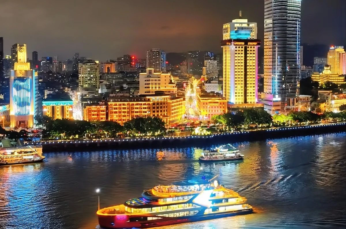 遊輪共四層,二層有與“臨家”合作的主題包廂,複刻老廈門家宴;三層融合僑鄉風味與潮流酒飲;頂層甲板可欣賞鷺江夜景。沿途可欣賞鼓浪嶼、雙子塔等11個地標夜景,船上還有魔術表演、音樂演出等互動活動。“嶼見66”遊輪是福建省內最大的遊輪之一,船長65米,最大載客量450人,適合家庭聚會、公司團建等多種場景。它也是“海上閩味宴客廳”的載體,通過美食傳遞閩南文化。