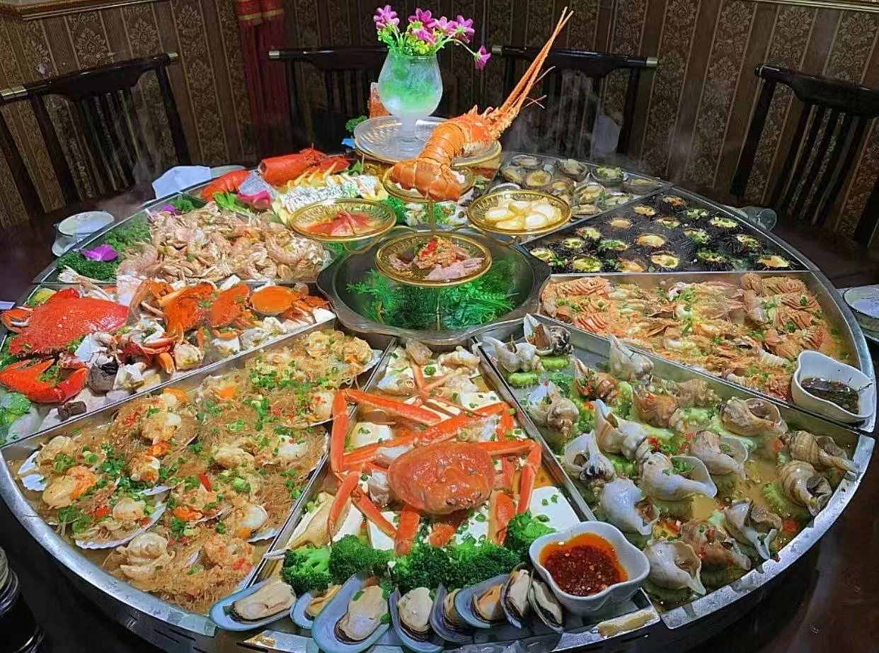 是當地非常受歡迎的特色美食,主打一個豪橫過癮。它家的海鮮拼盤分量十足,通常包含龍蝦、螃蟹、鮑魚等多種海鮮,採用一鍋端的方式烹飪,保留了食材的原汁原味,吃起來非常過癮。餐廳環境是典型的大排檔風格,煙火氣十足,氛圍很熱鬧。