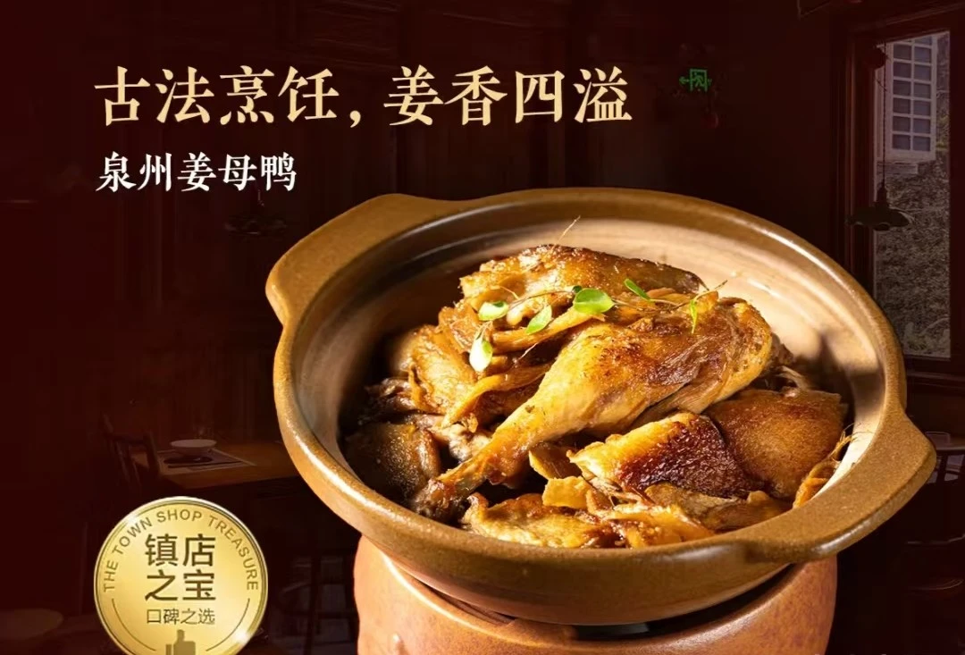 荔枝苑酒家是一家藏於泉州西街閩南古厝中的高口碑餐廳,主打精緻閩南菜,環境古韻十足,是本地人與遊客都青睞的美食打卡地。『薑母鴨』一種為經典燉煮版,鴨肉軟爛入味,薑香濃郁;另一種為幹燒做法,略帶焦香,風味更集中。