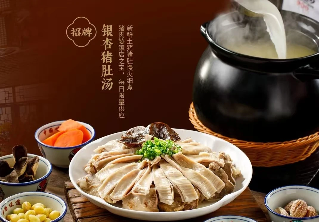 順德豬肉婆私房菜成立於2014年,是順德的知名餐飲名店。2016年,豬肉婆的菜式被收入央視紀錄片《尋味順德》中,並在全國熱播,讓豬肉婆私房菜成為宣傳順德美食文化的重要窗口。招牌菜『銀杏豬肚湯』,豬肚與豬筒骨搭配銀杏、陳皮等燉煮4小時,湯底濃鬱鮮香,需提前一天預訂。