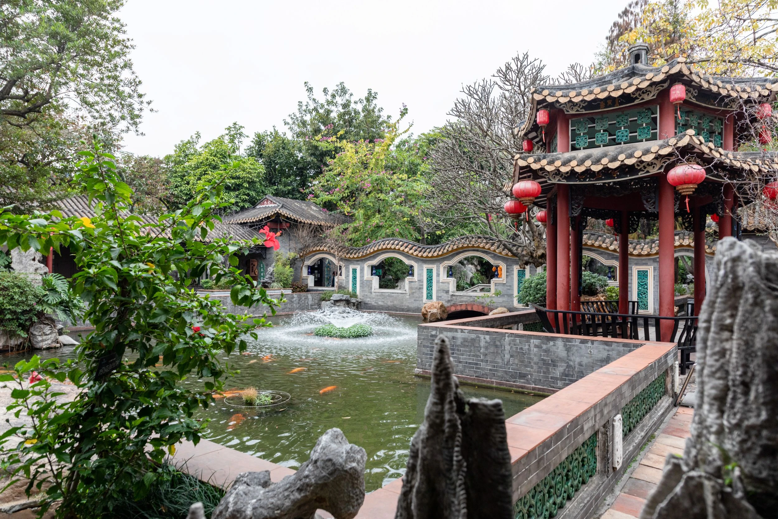 走進清暉園,仿佛踏入了一卷流動的嶺南水墨。碧溪草堂的青磚圓光門,框住了半池荷影;澄漪亭的貝殼明瓦,濾過了百年月光;船廳外的紫藤,仍纏著舊時的纜繩。