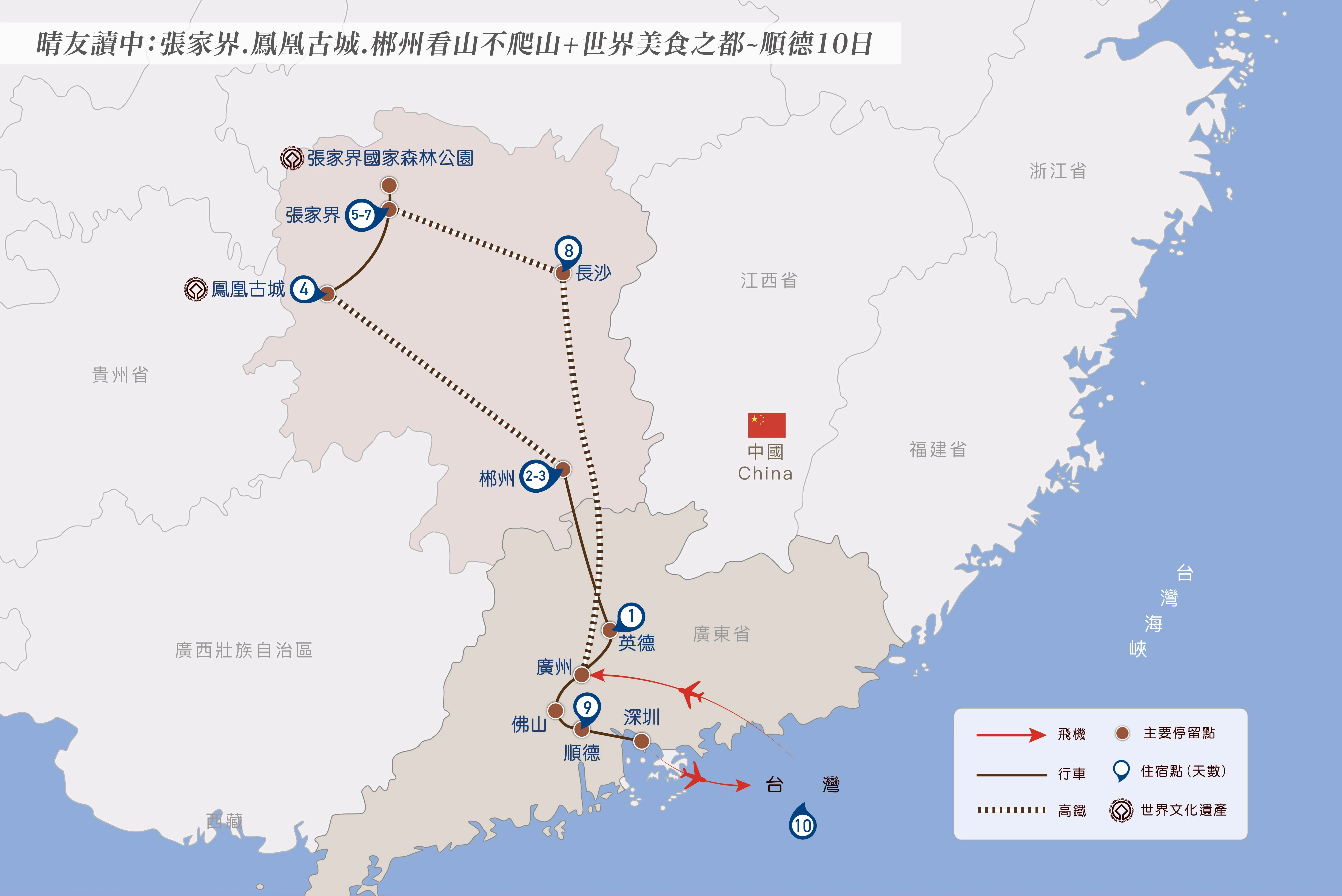 晴友讀中:張家界.鳳凰古城.郴州看山不爬山.世界美食之都-順德10日