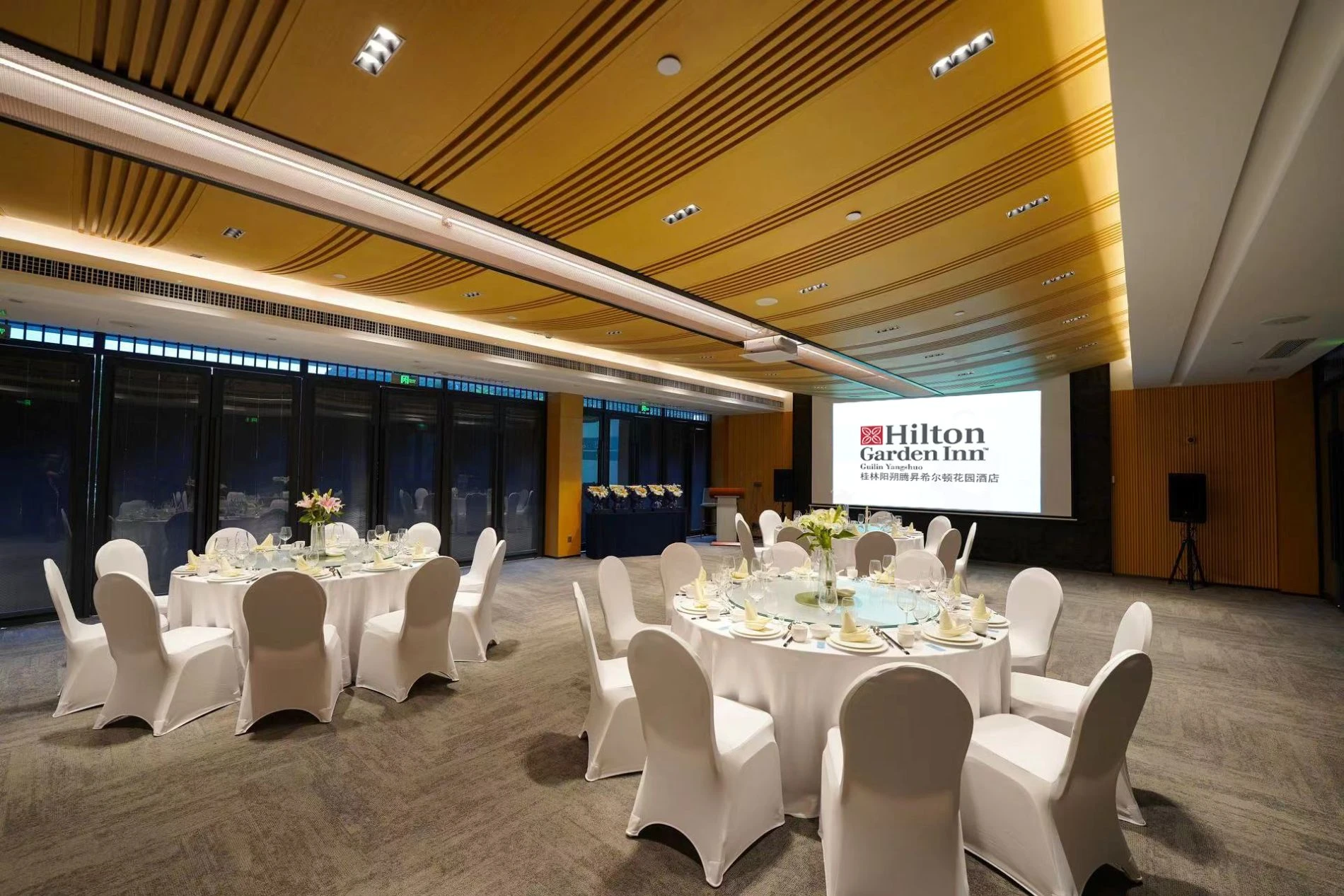 以「灕江為幕,魚鮮作筆」,兼顧商務儀式感與在地煙火氣,用舌尖丈量桂林山水。傍晚可賞落日熔金,夜晚坐擁兩江四湖燈光秀,私密宴請與觀景需求同步滿足。