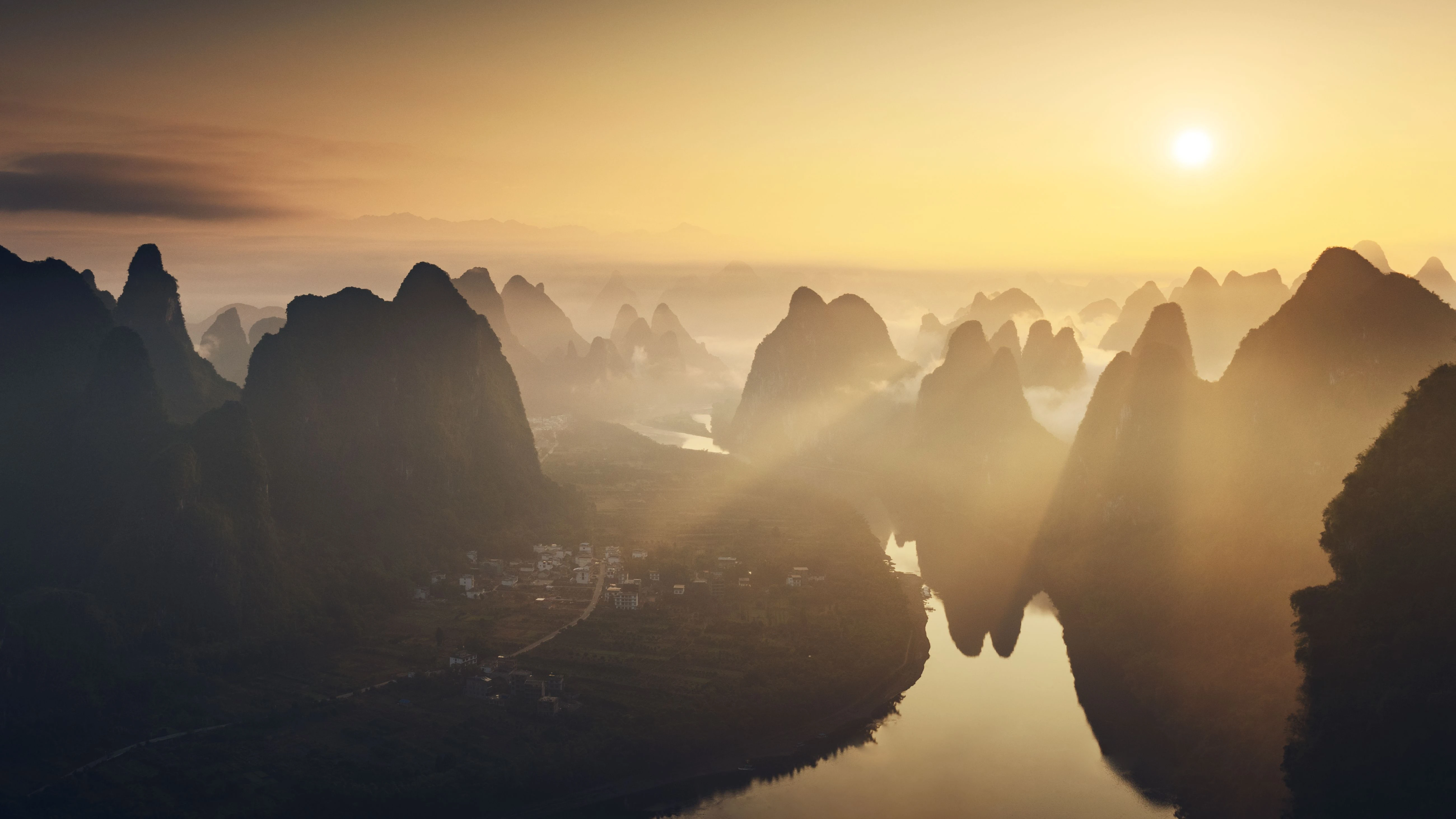 清澈灕江在群峰環抱中蜿蜒流淌,劃出絕美的「灕江第一灣」,俯瞰如碧綠絲帶纏繞青巒。桂林攝影家在此拍攝作品獲第10屆國際影展銅獎,被公認為「攝影家天堂」。相公山之美,在於群峰列陣的磅礴、灕江迴旋的靈動,每一幀都是自然揮毫的東方美學典範。