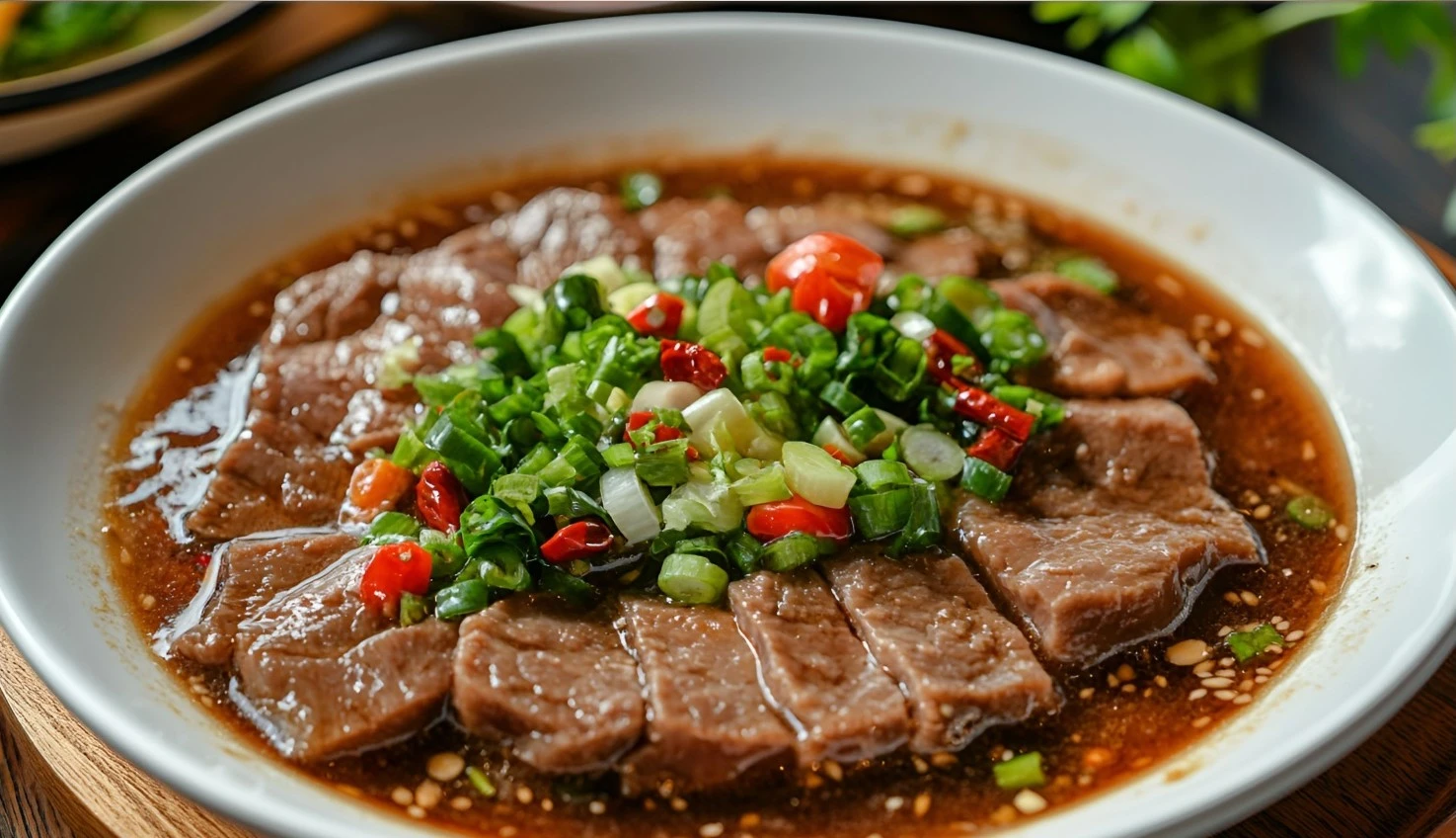 是潮州一家50多年的老號,以新鮮牛肉和精湛刀工聞名。其招牌吊龍肉採用逆紋橫切工藝,厚度僅1.5到2.0毫米,搭配牛骨熬制四小時的清湯底。牛肉從屠宰場到門店不超過一小時,保證極致新鮮。推薦部位包括雪花(鮮嫩多汁)、吊龍伴(肥瘦相間)、嫩肉(毫無負擔)和牛筋丸(香脆多汁)。