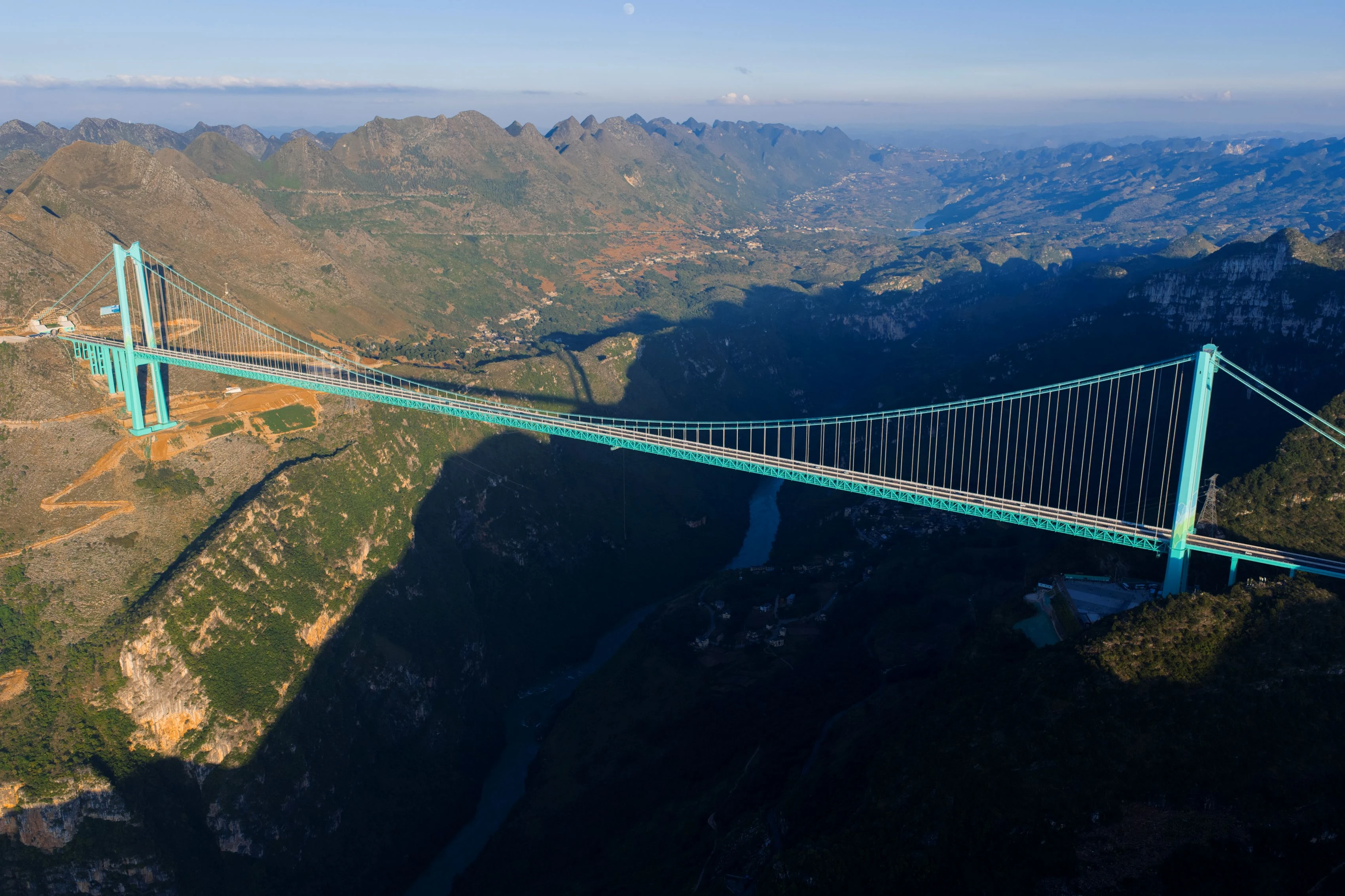 是自然奇觀與人類智慧的完美融合。這座橫跨“地球裂縫”的超級工程,以625米的橋面高度和1420米的主跨徑,刷新了世界山區橋樑的雙項紀錄。