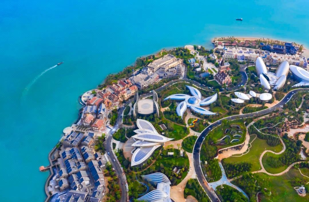 三座人工島如被浪花吻過的花瓣,在暮色中泛著珍珠母貝的光澤。跨海大橋化作一道銀色緞帶,連接著陸地與海上烏托邦。這裡是海花島,一個被譽為「世界最大花型人工旅遊島」的浪漫標本。