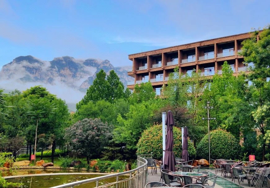 以“園林式隱奢”為特色,占地1000畝生態森林,含100畝綠植花卉園,合院式建築群隱於青山綠水間,融合紅旗渠精神與太行民俗文化元素。裝飾細節融入紅旗渠水利工程與林州鄉土風情,牆面展示民俗藝術,園林設計以峭壁、溪流為背景,呈現“山居畫境”的意境。