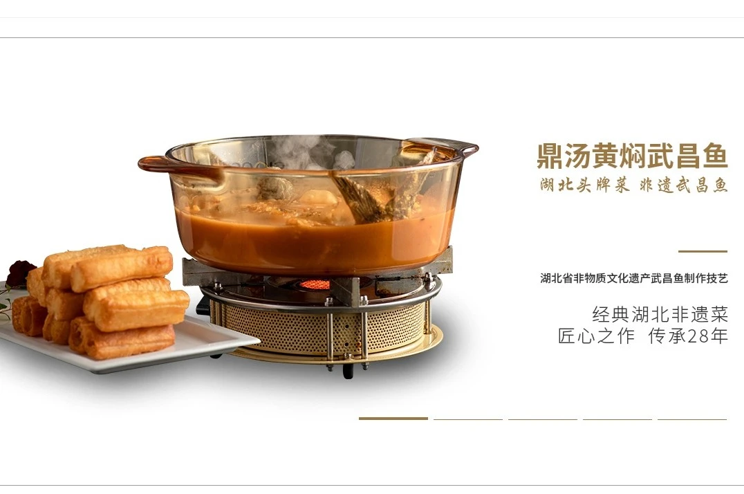 頭牌鼎湯黃燜武昌魚:省級非遺菜,活魚現烹,湯汁醇厚配有機魚肉。
