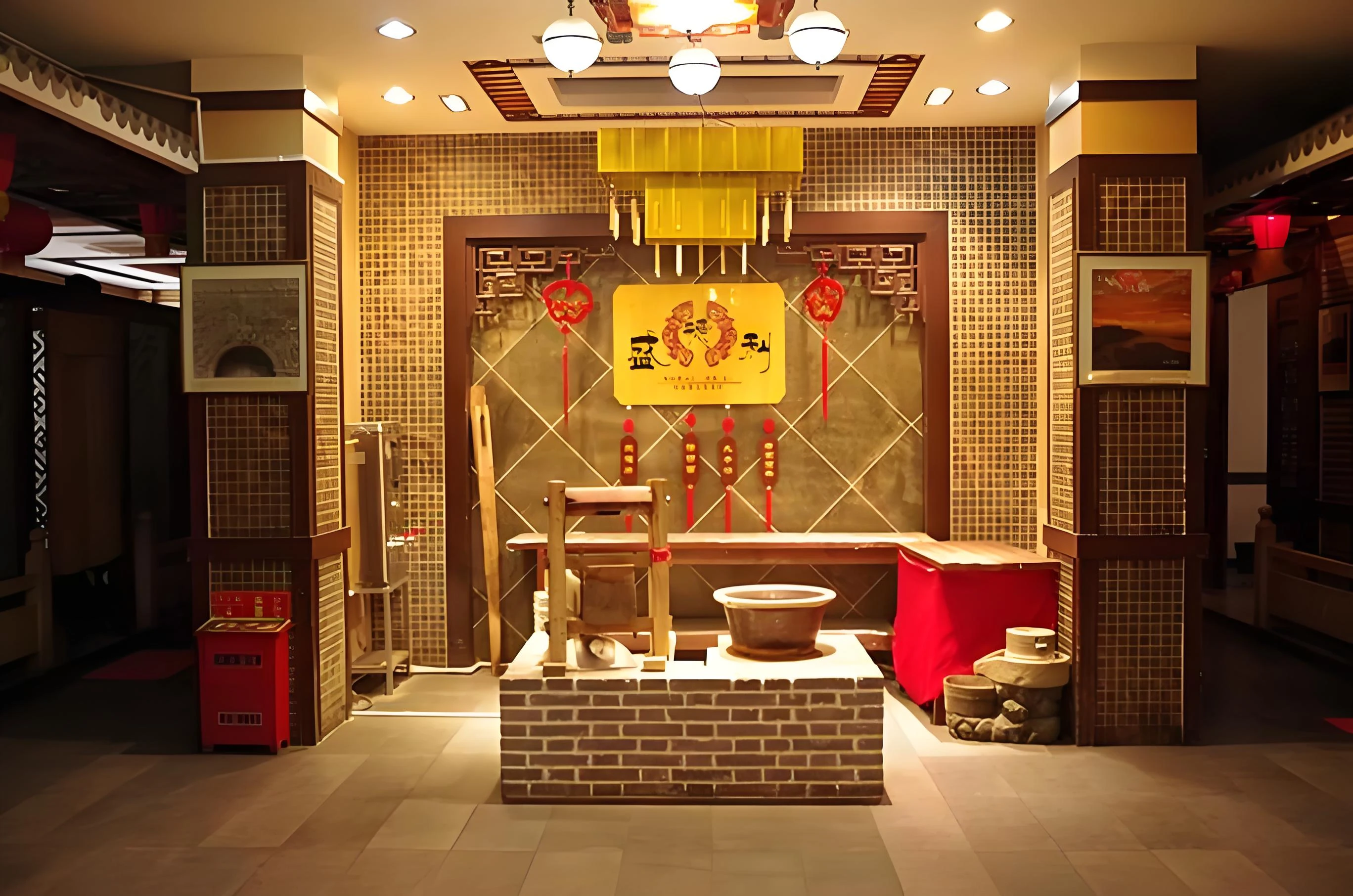 將豫劇元素(如水袖、摺扇)、商代建築輪廓及楚河漢界棋盤等融入空間設計,公區陳列瓦片、茶樓等河南符號。大堂以水流動態展現楚河漢界意象,電梯廳每層裝飾主題各異。
