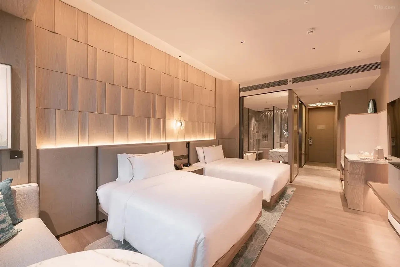 詮釋出武漢一種別具詩意的文化氛圍。超大的玻璃窗讓室內充滿自然光線,每間客房都配有萬豪品牌的特色軟墊層床墊和豪華羽絨被,另外還有55英寸液晶電視和高速無線網路連接。