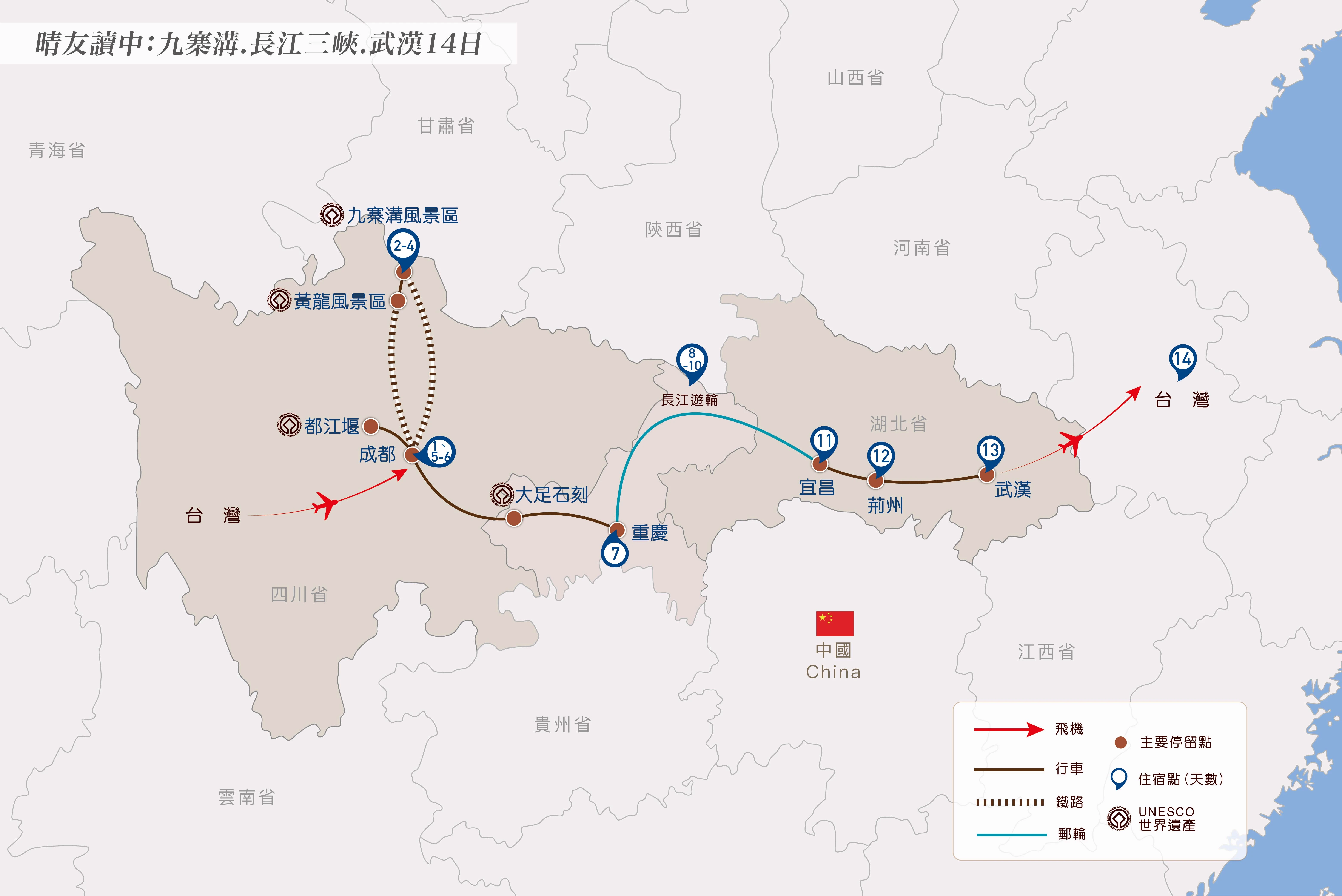 晴友讀中:九寨溝.長江三峽~美維凱旋號-6樓行政套房14日