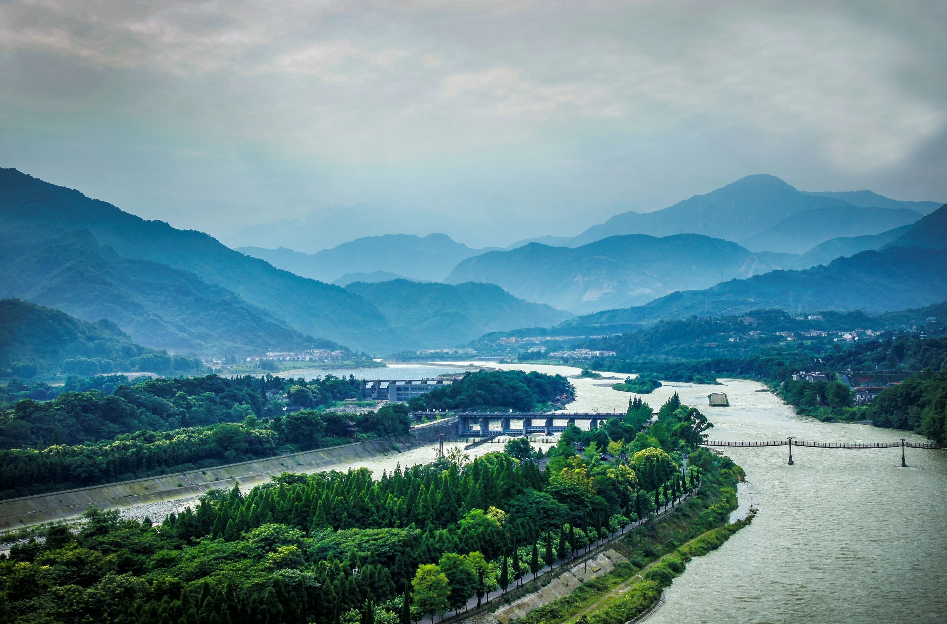 水韻千年都江堰,江流有序如翩然樂章,灌溉系統與青山相映,既有李冰治水心繫蒼生的智慧,亦有「半城山水半城綠」的盎然生機。