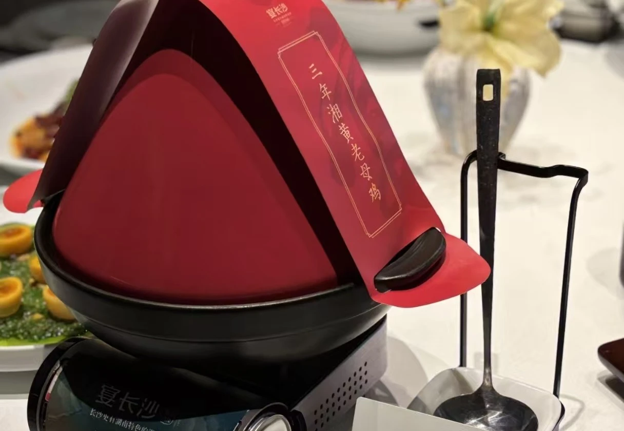 是長沙高端湘菜的代表,主打商務宴請和文化體驗,將湘菜從“重油重辣”的街邊印象升級成能代表湖南文化的精緻餐飲。照片為『三年湘黃老母雞燉花膠』:必點的招牌菜,揭蓋儀式由客人親自動手,還能收到祝福,金黃色的雞湯,營養滿滿。