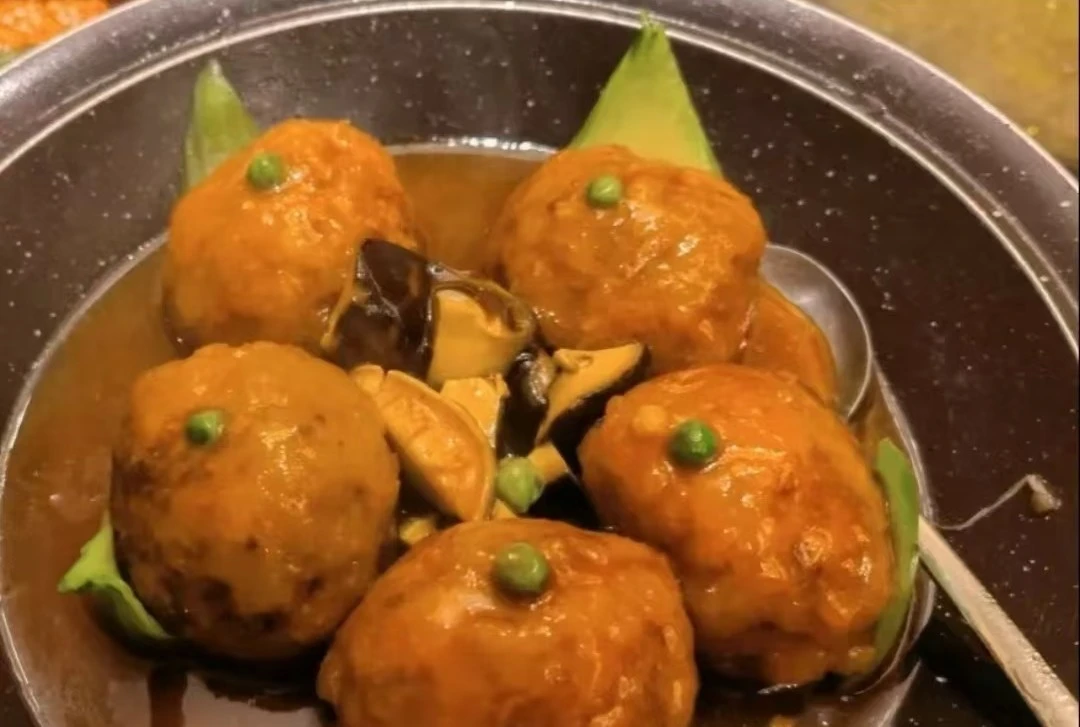獲「國家四鑽級酒家」「中華餐飲名店」等稱號,主廚團隊擅長跨菜系創新。「宮廷獅子頭」由宮廷禦廚後代指導主廚余遠洪創新,選用肥瘦3:7的土豬眉毛肉手工剁碎,不加澱粉,內嵌整顆鹹蛋黃,經兩次油炸定型後煲煮4小時,肉質軟糯如奶油,蛋黃餡綿密解膩。