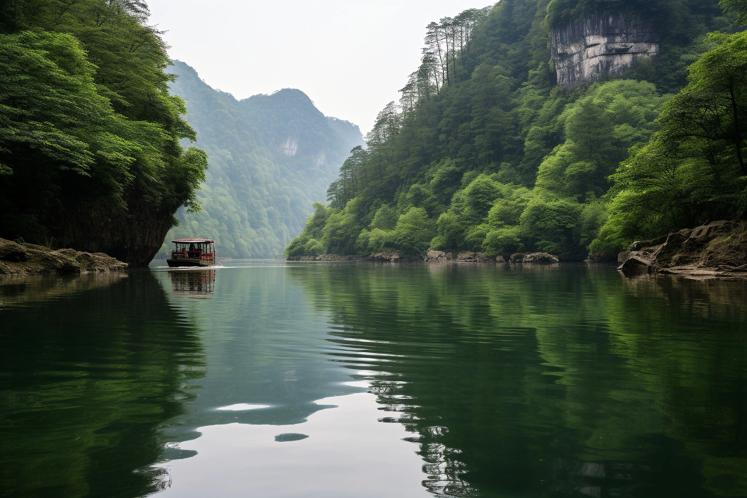 坐落於群山環抱之中,是張家界最具詩意的湖光山色之地。碧波萬頃,湖水清澈如鏡,倒映著奇峰怪石與翠綠山巒,宛如人間仙境。乘船遊湖,水天一色,讓人心曠神怡。