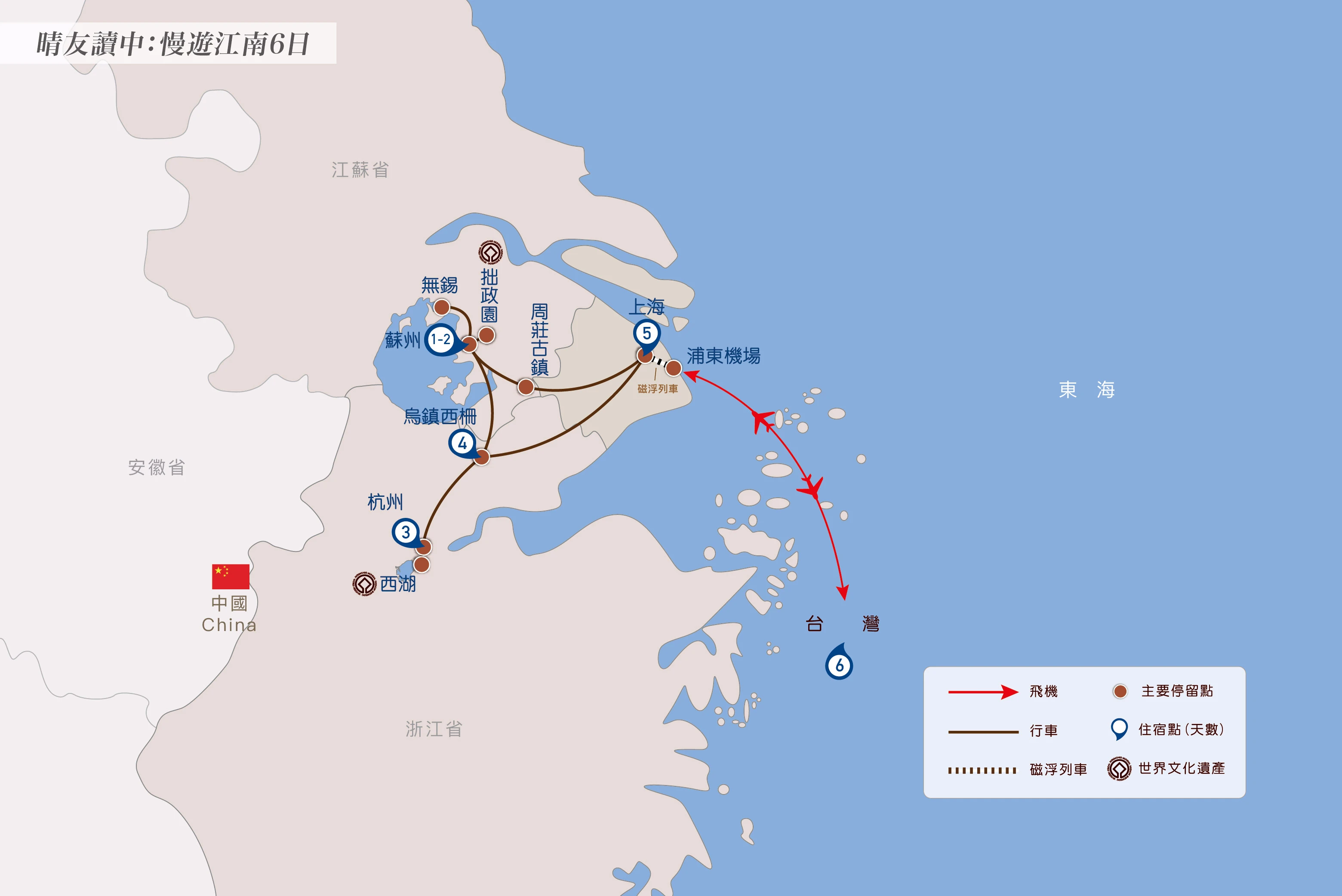 桃園國際機場✈上海浦東機場-搭乘磁浮列車-上海-85km-周莊【周莊古鎮】-30km-蘇州