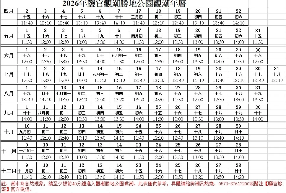 觀潮表