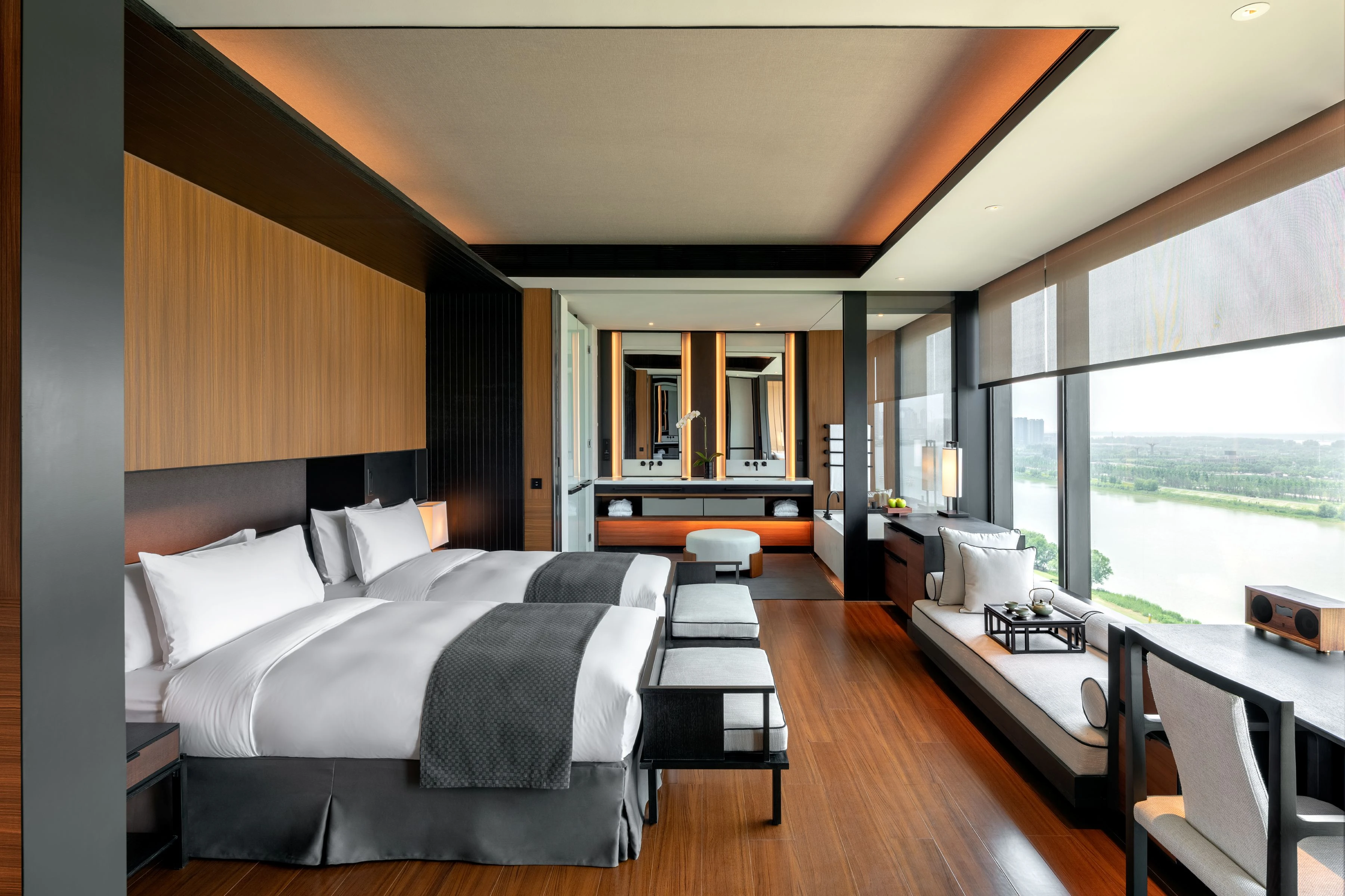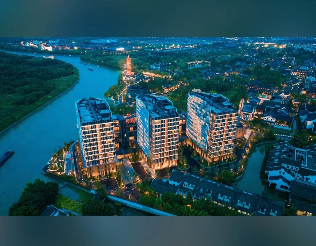 酒店設計靈感源自粼粼波光的京杭大運河,為古鎮內最高建築,可眺望運河美景、俯瞰古鎮風貌,景觀視野無可比擬。結合現代舒適與江南意境,打造獨一無二的入住體驗,是享受烏鎮之美的理想首選。