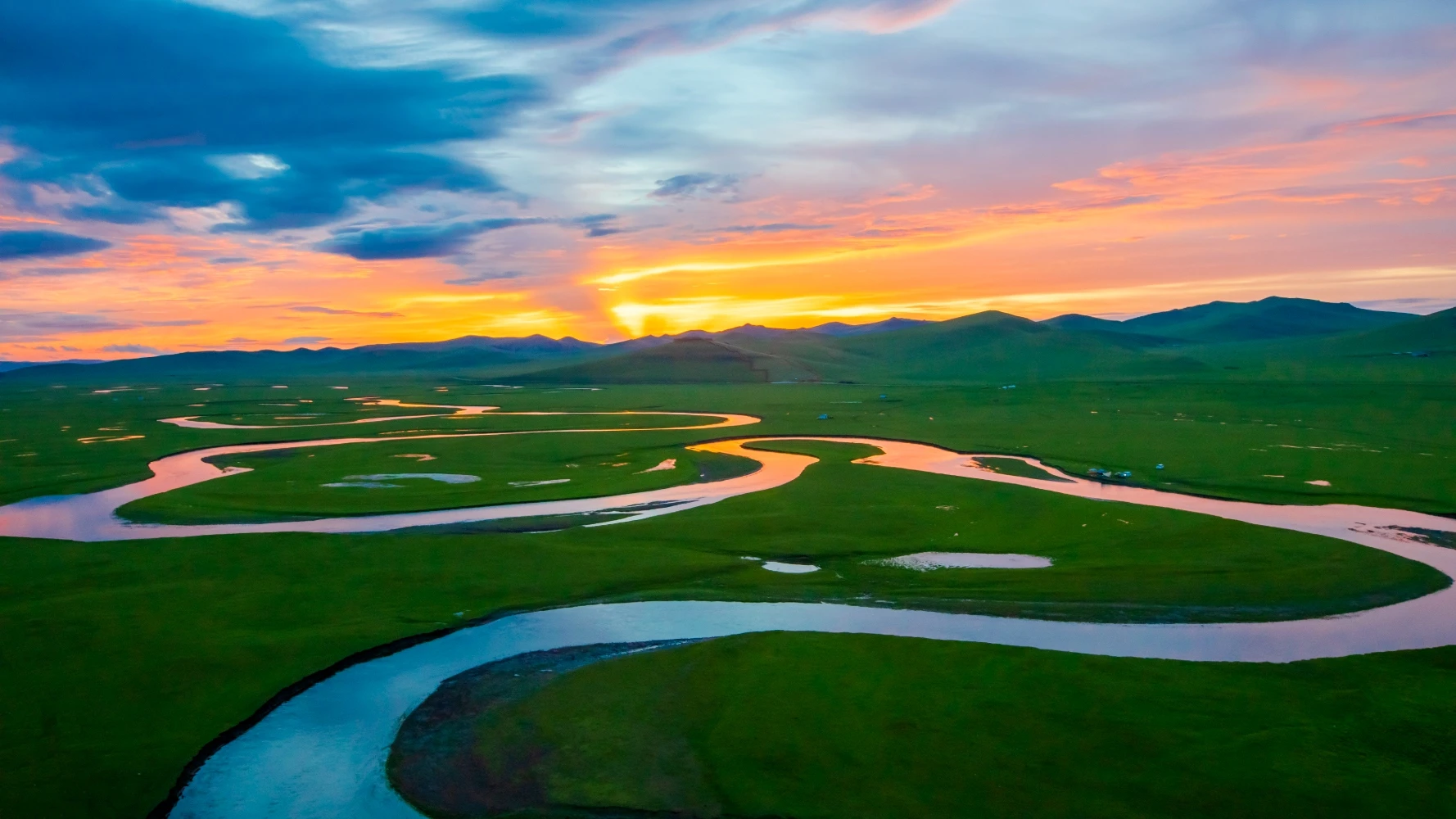 天下第一曲水,草原蜿蜒玉帶