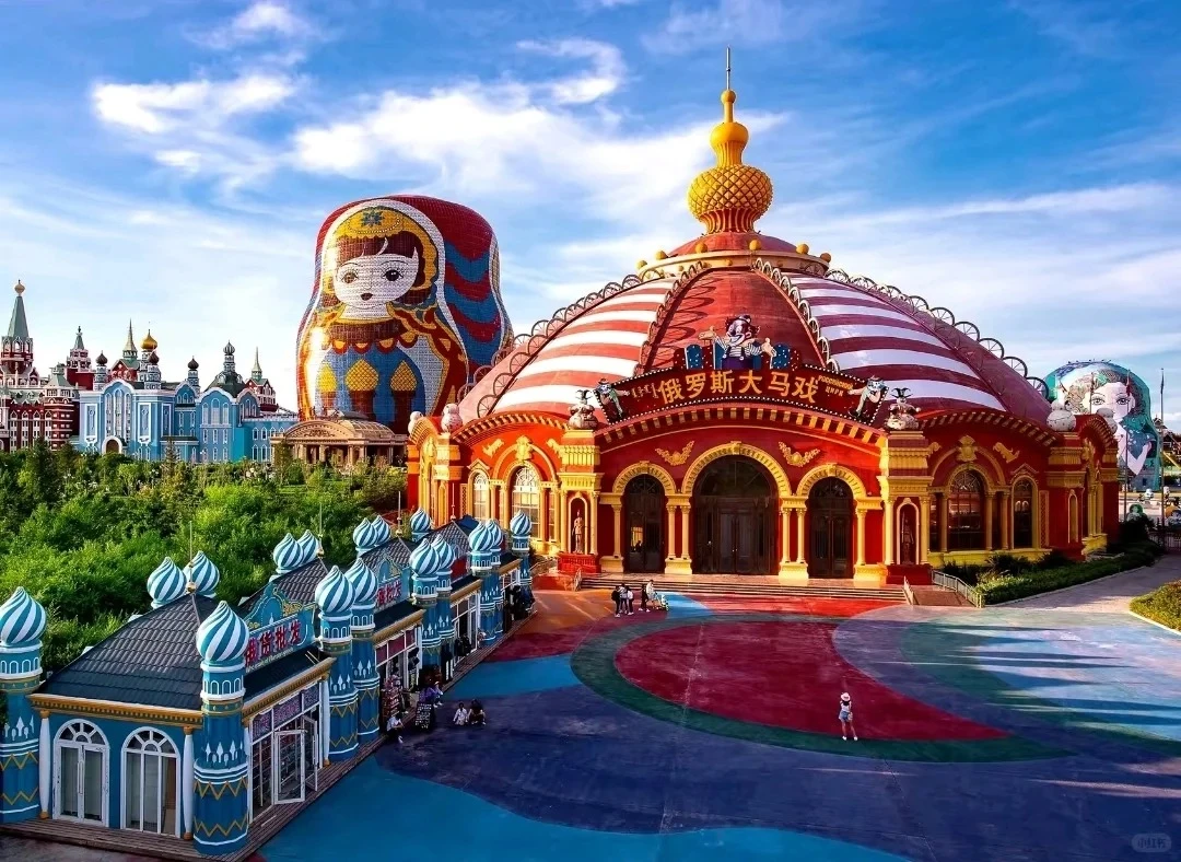 套娃景區位於中俄邊境滿洲里,是一座以俄羅斯傳統工藝品「套娃」為主題的大型綜合旅遊區。標誌性建築是高達數十米的巨型套娃酒店,景區內遍佈色彩斑斕的套娃雕塑、俄式城堡與教堂風格建築,彙聚演藝、購物、娛樂于一體,宛如一座夢幻的邊境童話王國。