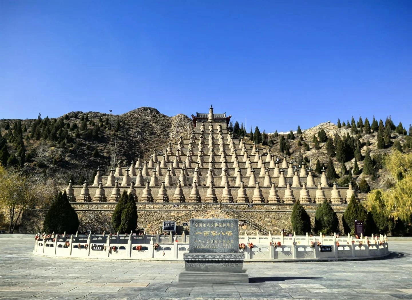 是中國現存最大且排列最整齊的喇嘛塔群之一,位於寧夏青銅峽黃河大峽谷景區內,依山勢鑿石分階而建,呈等腰三角形佈局。塔群由108座覆缽塔組成,按奇數排列成12行,塔身有覆缽式、葫蘆形等多種形制,塔刹為相輪傘蓋寶珠頂。