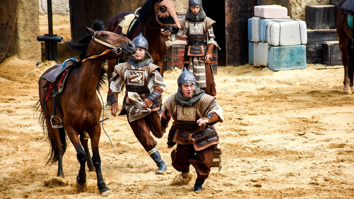 《漠南傳奇》在希拉穆仁草原揭開史詩帷幕。三百匹蒙古馬踏碎星光,弓箭手在烈火中策馬彎弓。實景演出以天地為幕,將敕勒川的千年牧歌、駝隊商道的光影傳奇,化作馬背民族寫給蒼茫大地的英雄詩。