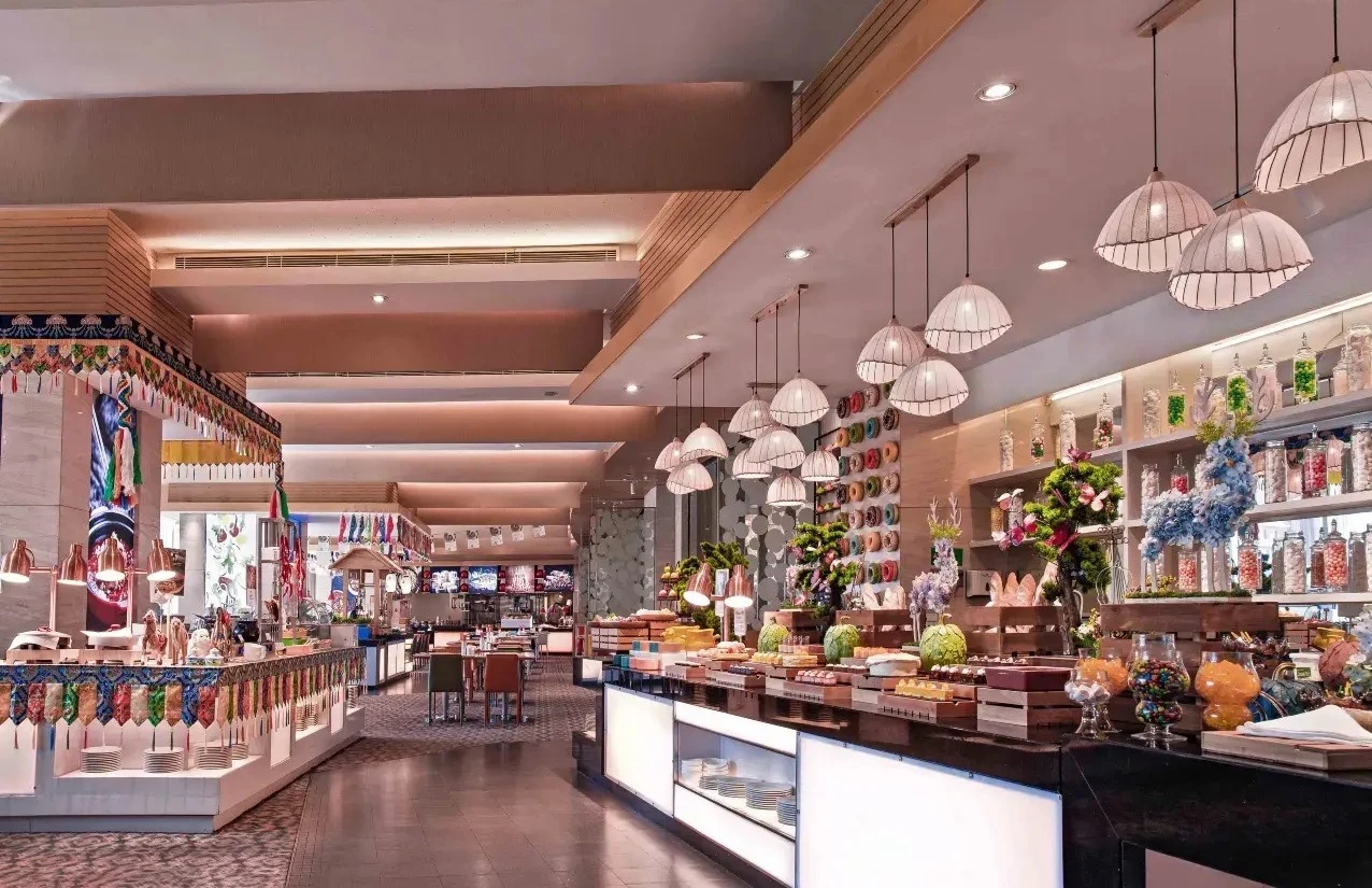 包頭香格里拉大酒店自助晚餐以高端環球美食體驗著稱,融合中西及東南亞特色料理,提供現煎牛排、海鮮大咖、五糧液提拉米蘇等爆款菜品