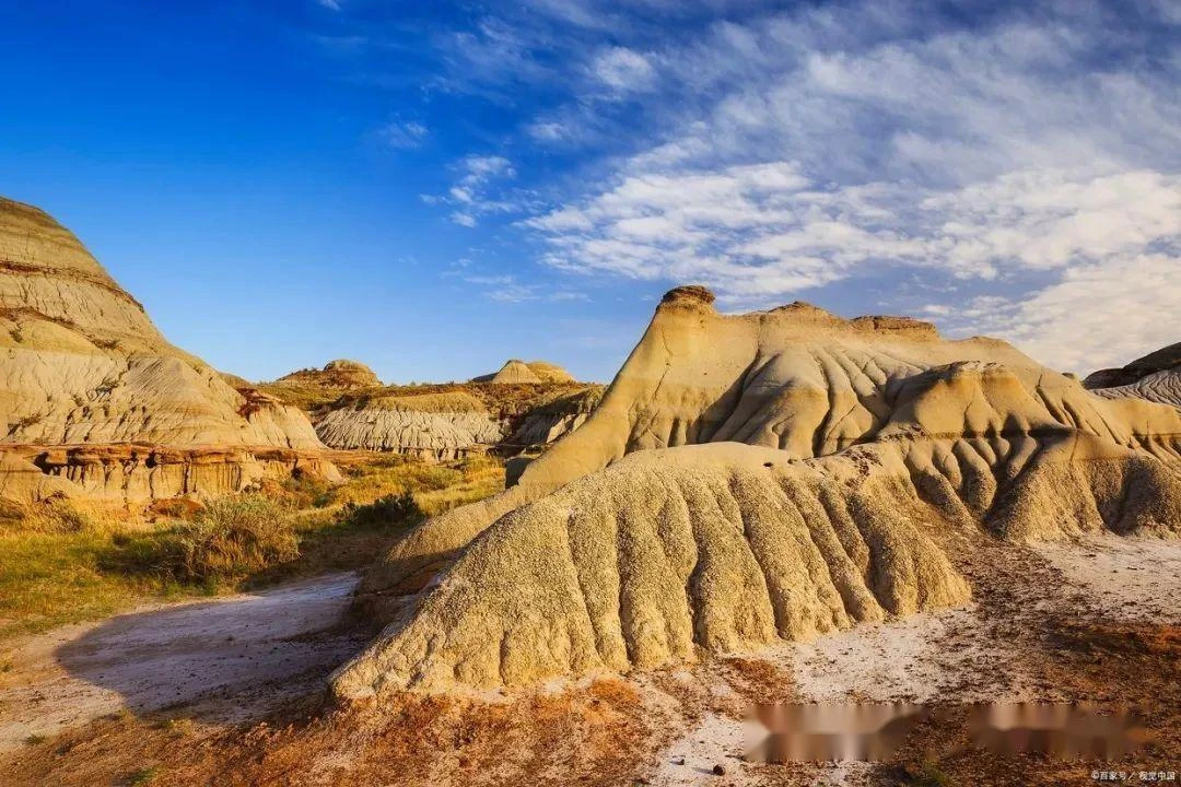 如一匹被天神遺落的綢緞,鋪展在荒原之上。每一道波紋都是億萬年的詩行,層疊的岩層如凝固的火焰,從深紅到橙黃,再到淺金的漸變,仿佛落日熔金時天空的倒影被大地悄然收藏。