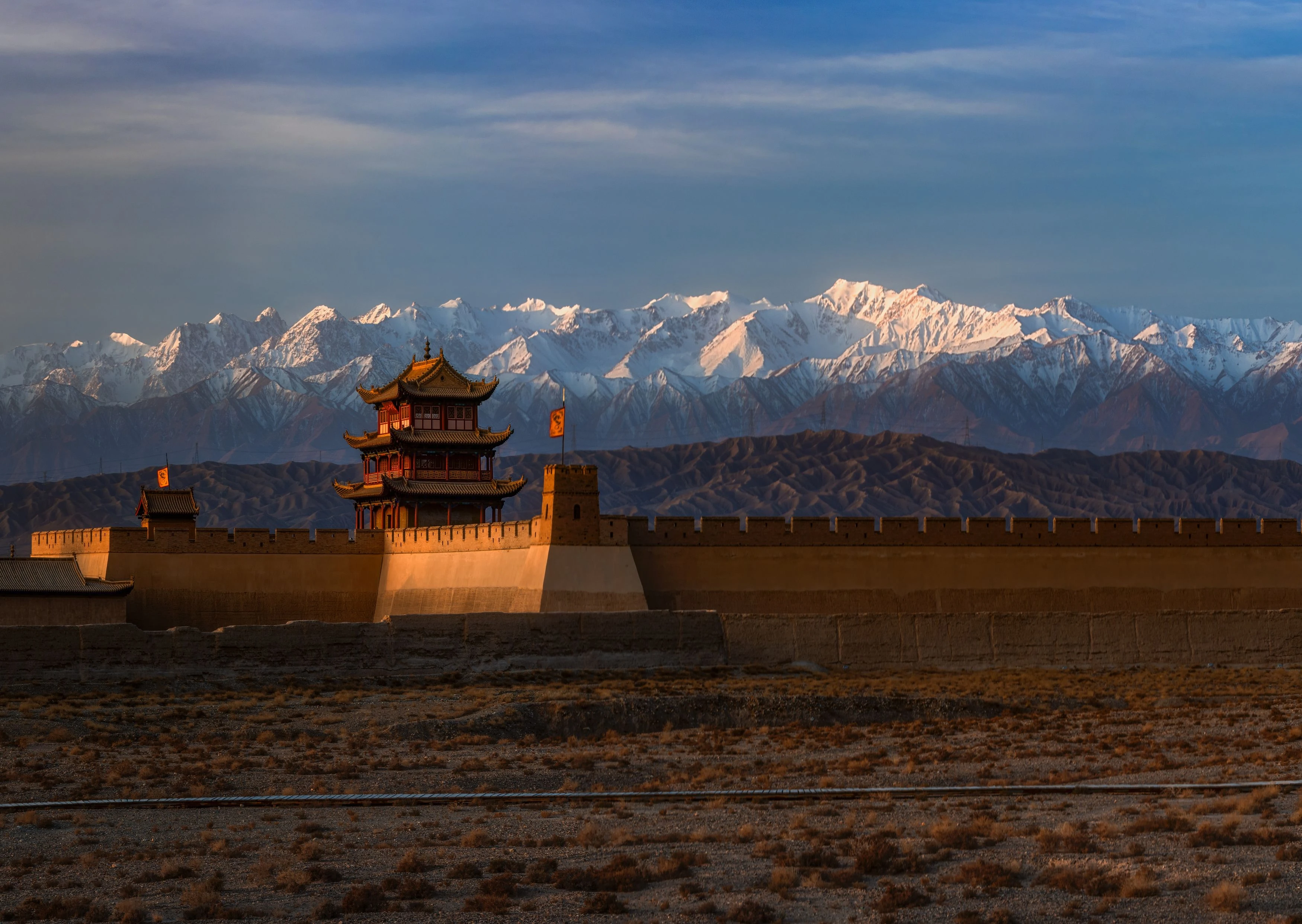千年風沙雕琢出城牆莊嚴的容顏,登上城樓,祁連雪峰與遼闊戈壁盡收眼底,絲路古道昔日的繁華與寂寥,皆融入斑駁磚石之中,隨著邊關落日餘暉,訴說歷史的榮耀與滄桑。