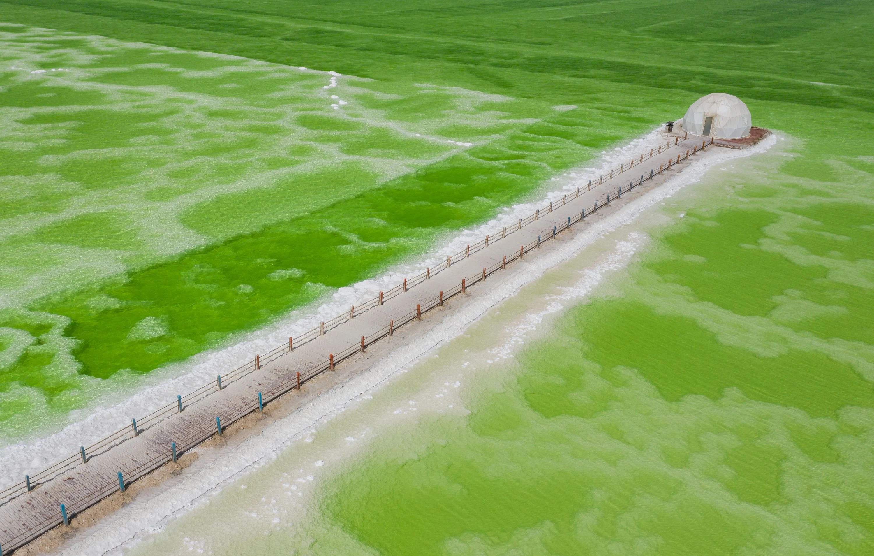 湖面潔白晶瑩,似雪非雪,似冰非冰。陽光傾灑,折射出絢麗的光暈,漫步其上,如踏入幻境之中,天地浩渺間,令人感嘆自然之神奇與壯美,心緒也隨之明淨純粹。