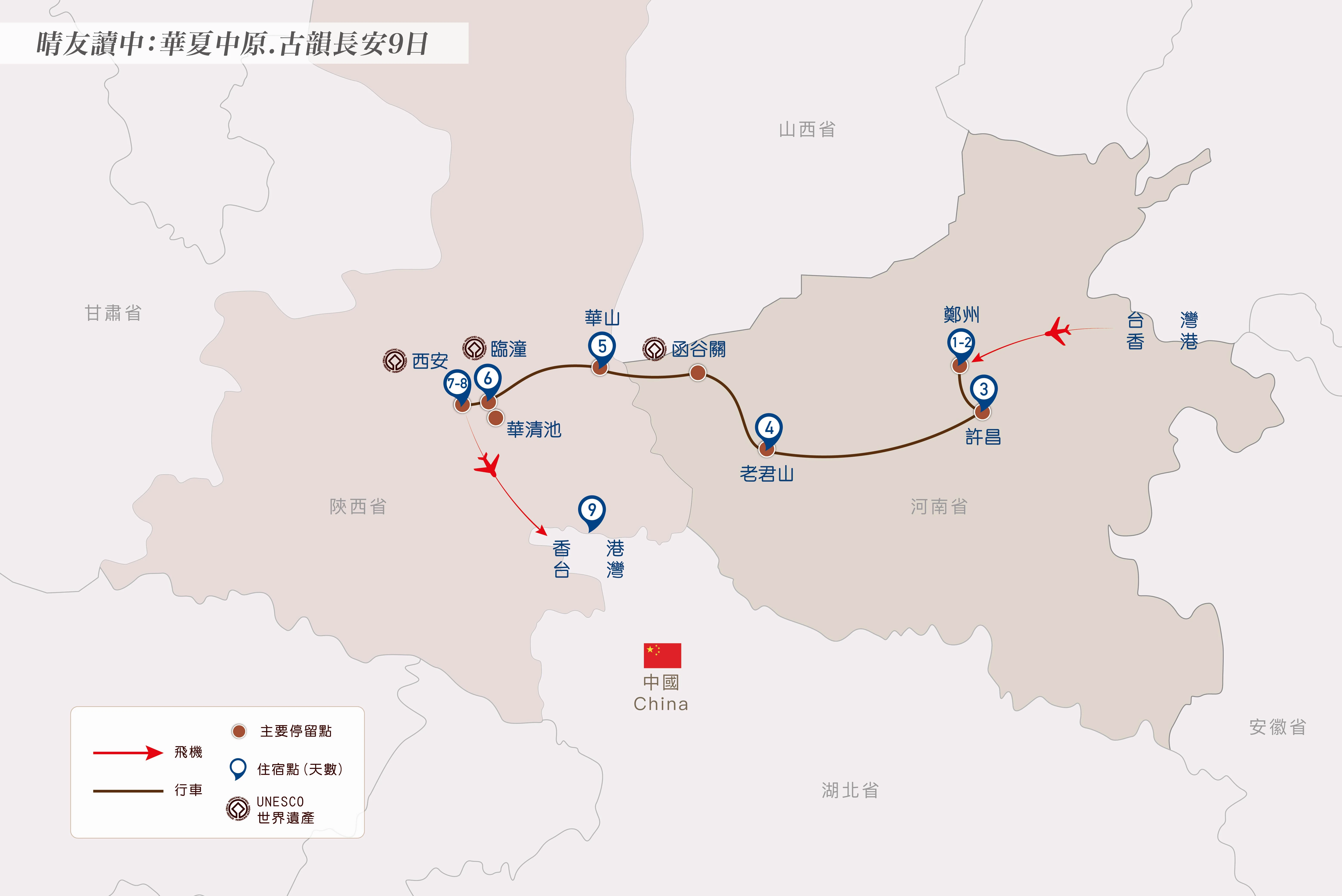 欒川-162km-【函谷關】-70km-【潼關古城】-20km-華陰