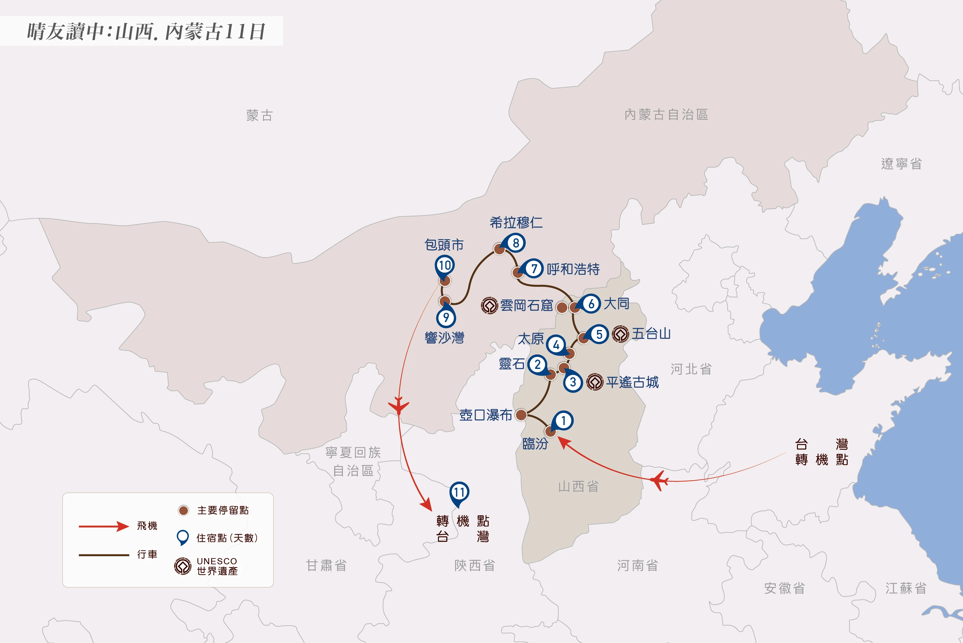 平遙-80km-【常家莊園】-50km-太原【晉祠、中國煤炭博物館】