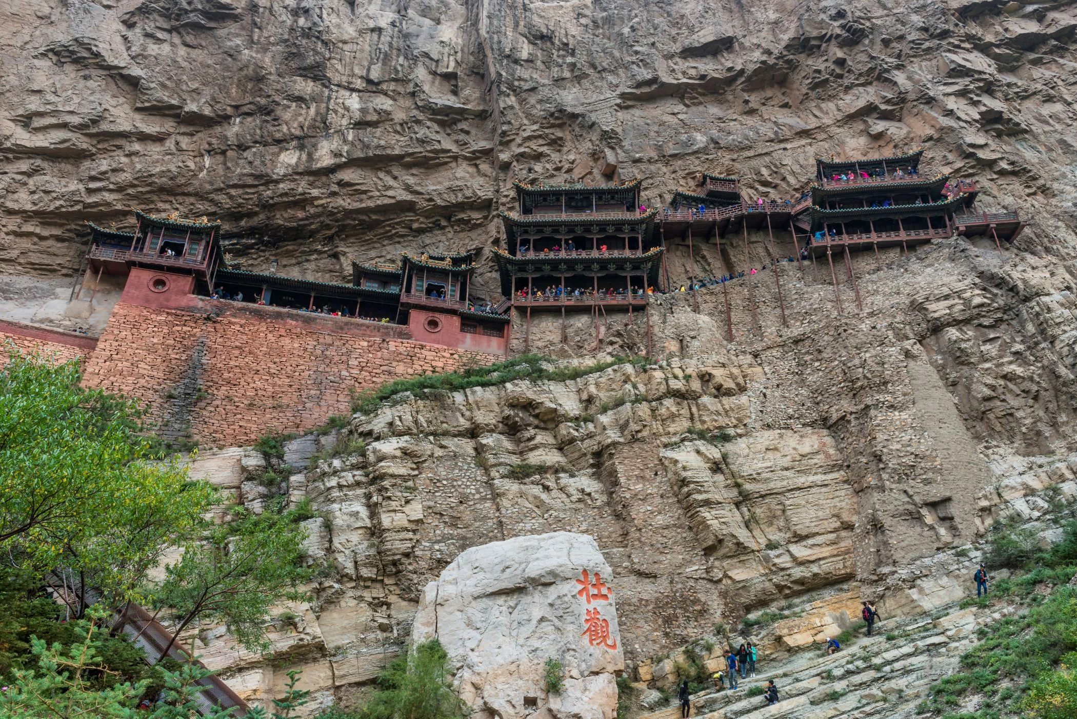 建於峭壁之上,距地數十米,結構巧妙、如飛懸空中,寺中融合佛、道、儒三教於一體,體現中國宗教文化的包容精神。木構建築依山勢而築,梁柱插入岩石,歷經千年風霜仍屹立不倒。