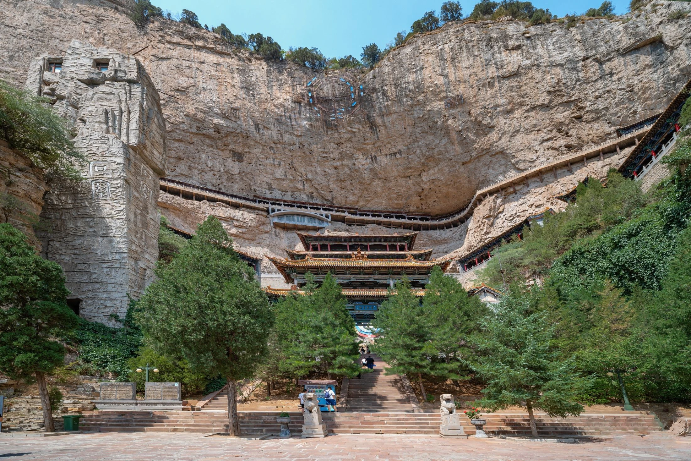 懸崖峭壁間飛檐翹角,展現出古代建築藝術的精湛