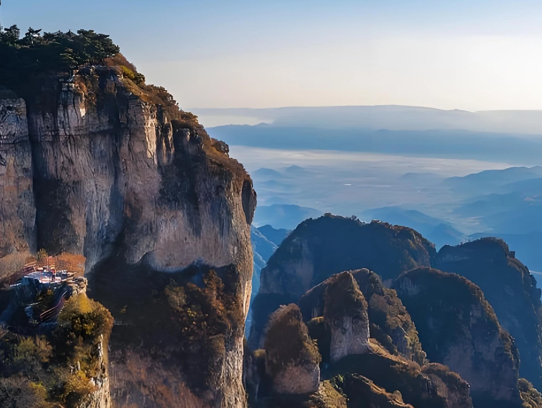 位於太行之巔,雲海翻騰、峰巒疊嶂。登臨絕頂,萬仞峭壁盡收眼底,絕壁天路蜿蜒盤旋,如巨龍穿行山間,氣勢磅礴四時景色各有風姿。既有山河壯麗之氣概,又有天地悠悠之詩意。