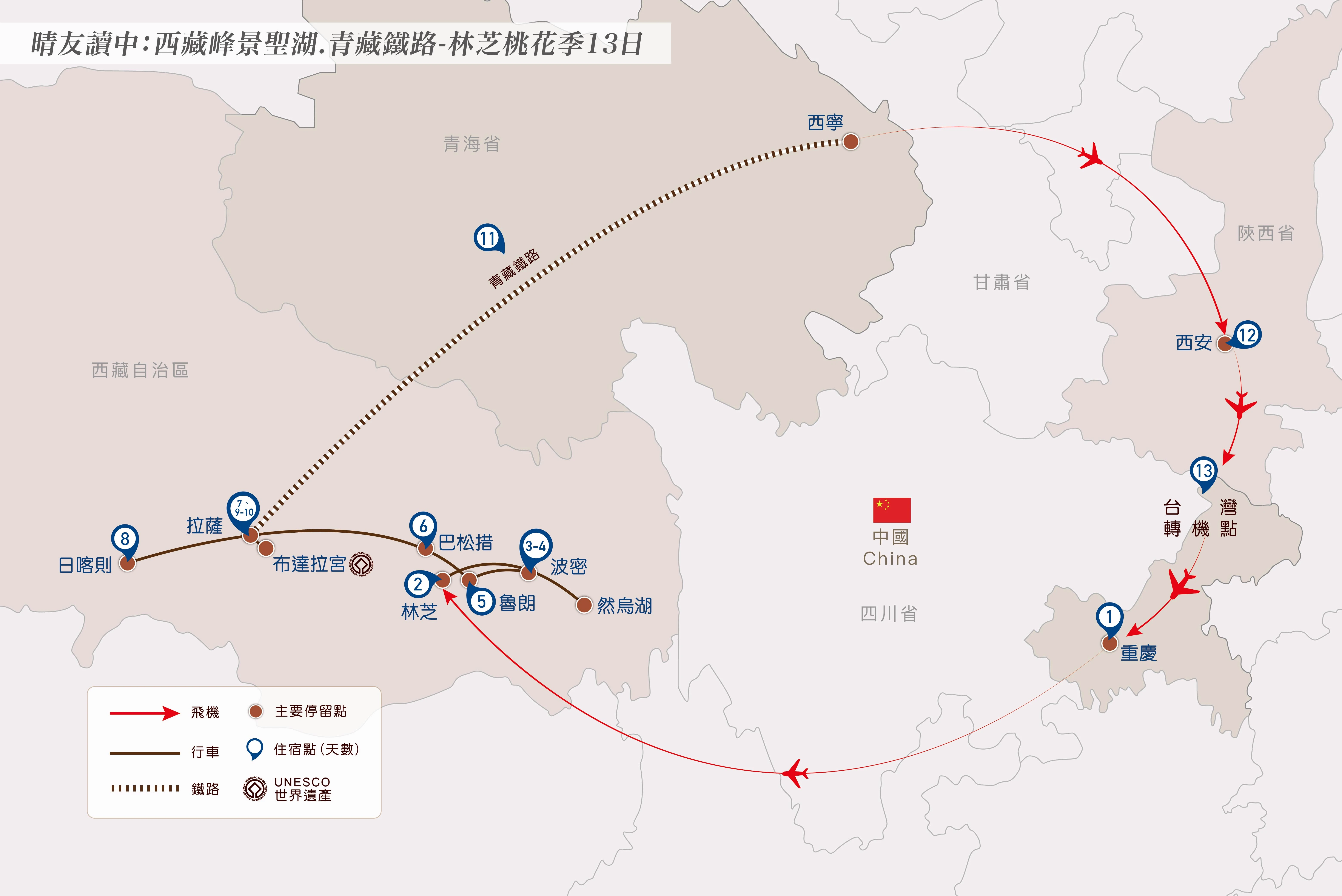 晴友讀中:西藏峰景聖湖.青藏鐵路-林芝桃花季(重慶進)13日