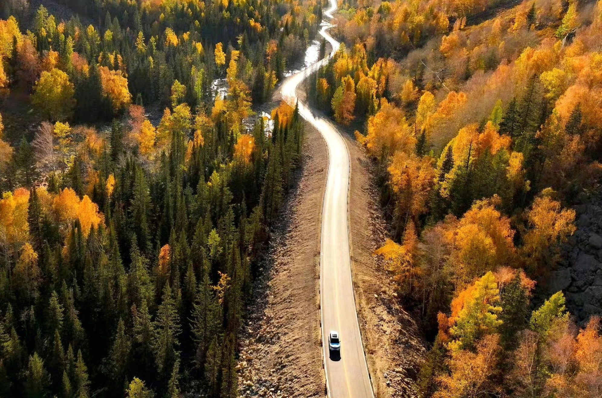 獨庫公路雪色髮卡彎甩出銀河韁繩,馱著四季在懸崖上縱馬狂奔。阿禾公路草原褶皺裡,轉場星河親吻柏油路面,車轍碾碎的白樺林倒影正與雲霧起舞。