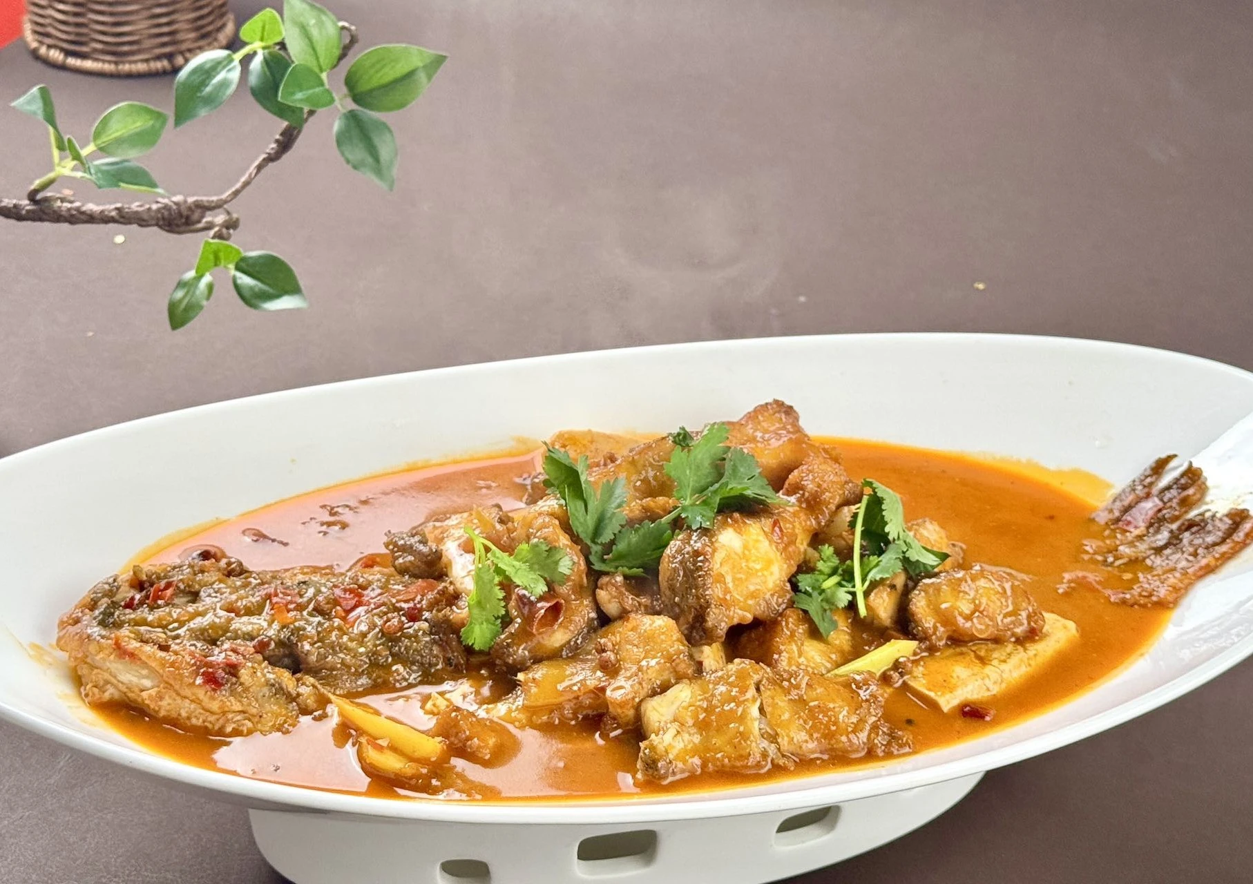 招牌特色『狗魚燒豆腐』狗魚肉質緊實如蒜瓣,豆腐嫩滑入味,醬香濃郁湯汁醇厚,常搭配米飯或饢食用。