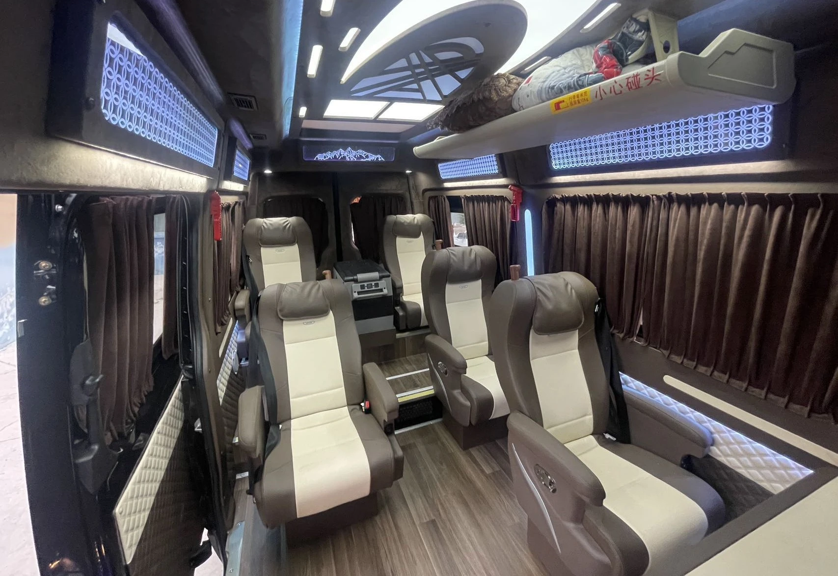 5天保姆車,會比用3排座巴士,每位車資貴一萬多台幣,但可直進景區,以及美麗的獨庫公路(限行7座以下車輛)。車上有氛圍燈、卡拉OK系統、露營桌椅真皮沙發座椅、冰箱。沿途行車經美麗的風景,可停車的地方時,可用車上備的露營桌椅,感受在大美自然中,品茗茶或咖啡的愜意,車上備熱水及茶&咖啡包。