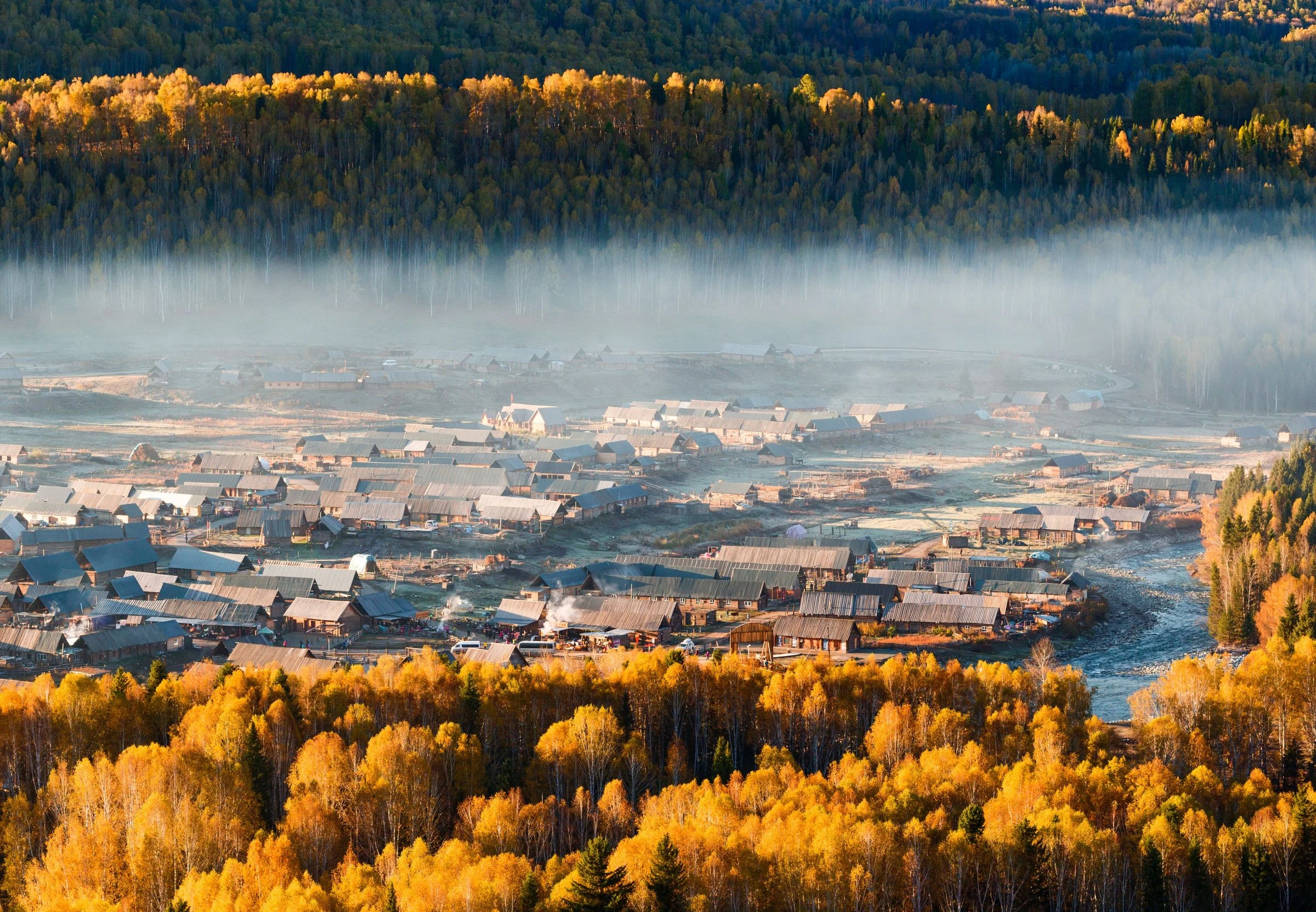 白樺林間,圖瓦人村落如夢初醒,鹿皮帳篷映著雪山晨光,楚吾爾琴聲與呼麥悠揚,喚醒了馬頭琴上的北疆情韻。松香浸透的琴聲從木窗櫺淌出,馬鞍上晃動的銀飾正與山雀對歌。白哈巴村被《國家地理雜誌》評為「中國最美八個小鎮之一」。