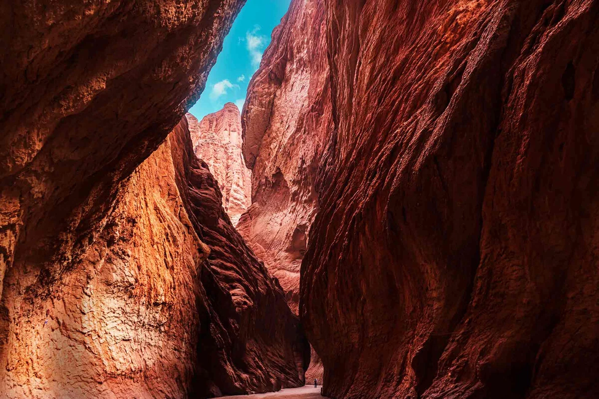 天山托木爾大峽谷宛如天山南麓的「地球裂痕」。億萬年的風雨侵蝕,雕刻出赤紅如火的雅丹與鹽岩喀斯特地貌,萬壑縱橫,峰林如劍,行走其間,仿彿穿越至一片浩瀚而蒼茫的遠古秘境。