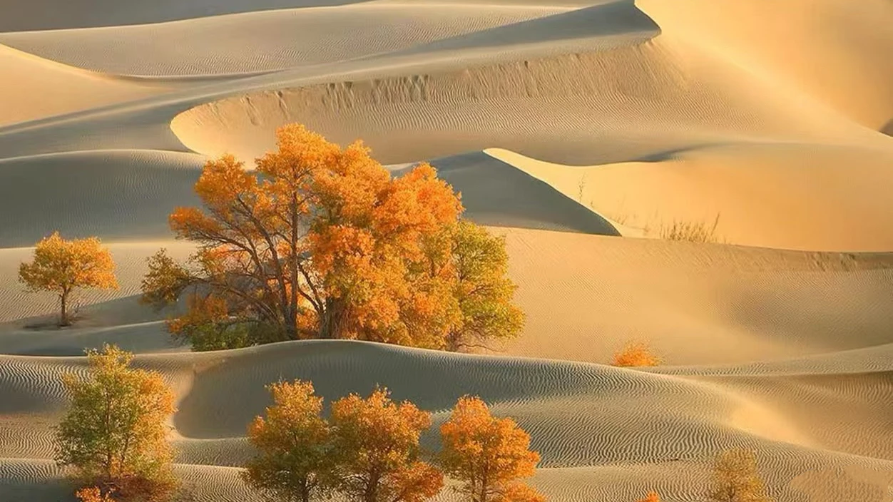 這裡沒有溪流滋養,卻有根系在地下織就綠洲;看似死寂的沙海,因胡楊的傲立而沸騰著無聲的生機。