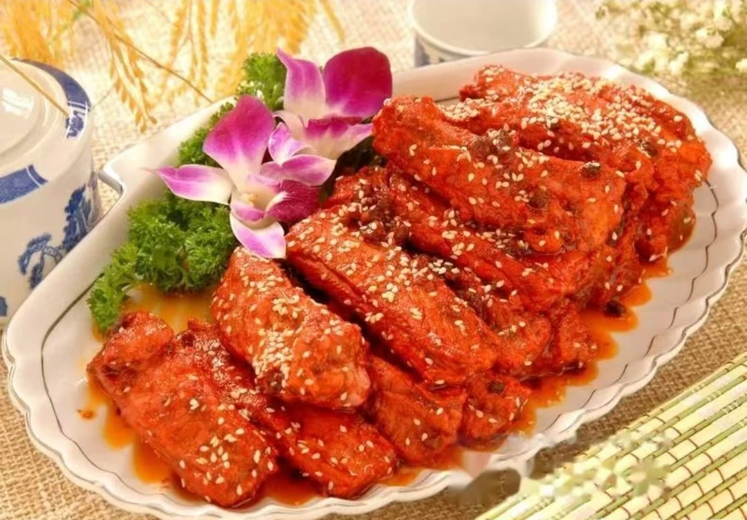 『新疆祕製排骨』採用傳統饢坑慢烤或密制香料長時間燜燉,使排骨充分吸收洋蔥、孜然、辣椒、花椒等調料風味,肉質軟爛脫骨,香氣深入骨髓。