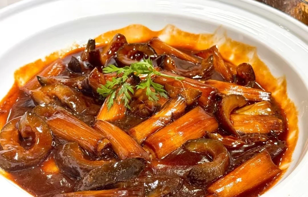 北京著名的中華老字號、五鑽級酒家,其建築風格仿照中南海內的豐澤園設計,青磚灰瓦、雕樑畫棟,營造出濃厚歷史氛圍。『蔥燒遼參』被譽為該店的金牌看家菜,以其濃鬱蔥香、軟糯海參與精妙火候馳名中外。這道菜不僅是豐澤園的招牌,更代表了魯菜「以濃攻濃」的烹飪哲學,曾多次登上國宴舞臺,如香港回歸十周年慶典宴會中即作為魯菜代表亮相。